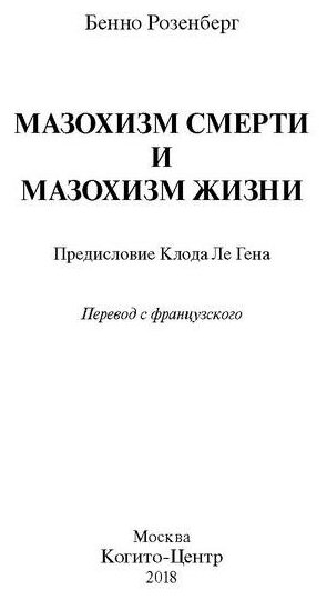 Мазохизм смерти и мазохизм жизни (Бенно Розенберг); Когито-Центр, 1991