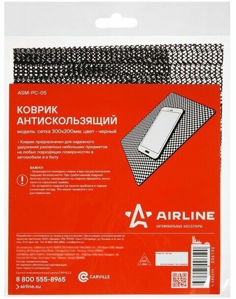 Антискользящий коврик черного цвета с поверхностью «сетка» и размерными показателями 300х200мм устанавливается на плоской поверхности панели автомобиля и играет роль фиксатора мелких предметов во время движения авто. При необходимости изделие можно обрезать для получения желаемого размера.Преимущества: высокие свойства антискольженияэластичныйне липкийможно вырезать любой формы и применить в любом подходящем месте.