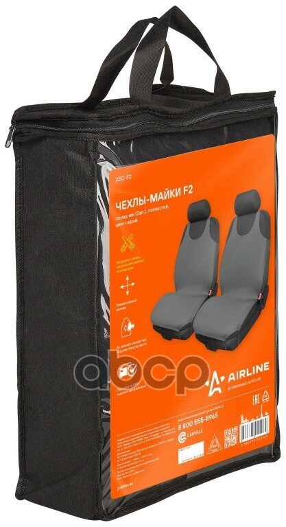 Аксессуары Airline Чехлы в форме маек F-2 предназначены для передних сидений легковых автомобилей. F-2 выполнены в сером цвете и изготовлены из полиэстера. Форма майки обладает массой преимуществ для чехла, т.к. она защищает только используемую поверхность сиденья, не создает барьера для открывания подушек безопасности, а также не требует усилий при установке. Универсальный размер чехлов дает возможность применять их к большинству легковых автомобилей.