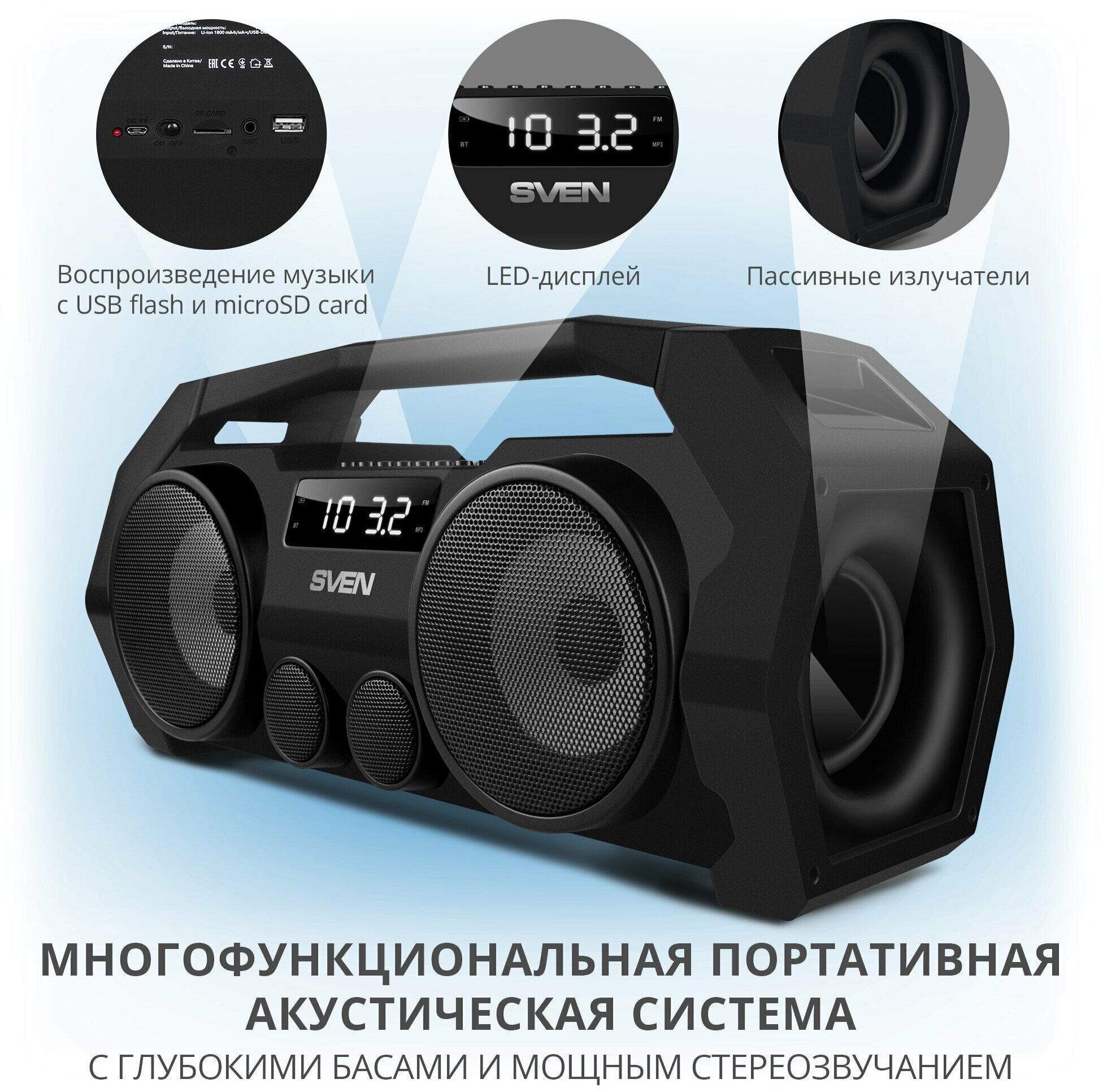 Портативная акустика SVEN 18 Вт FM USB Bluetooth черный (SV-016173) PS-465