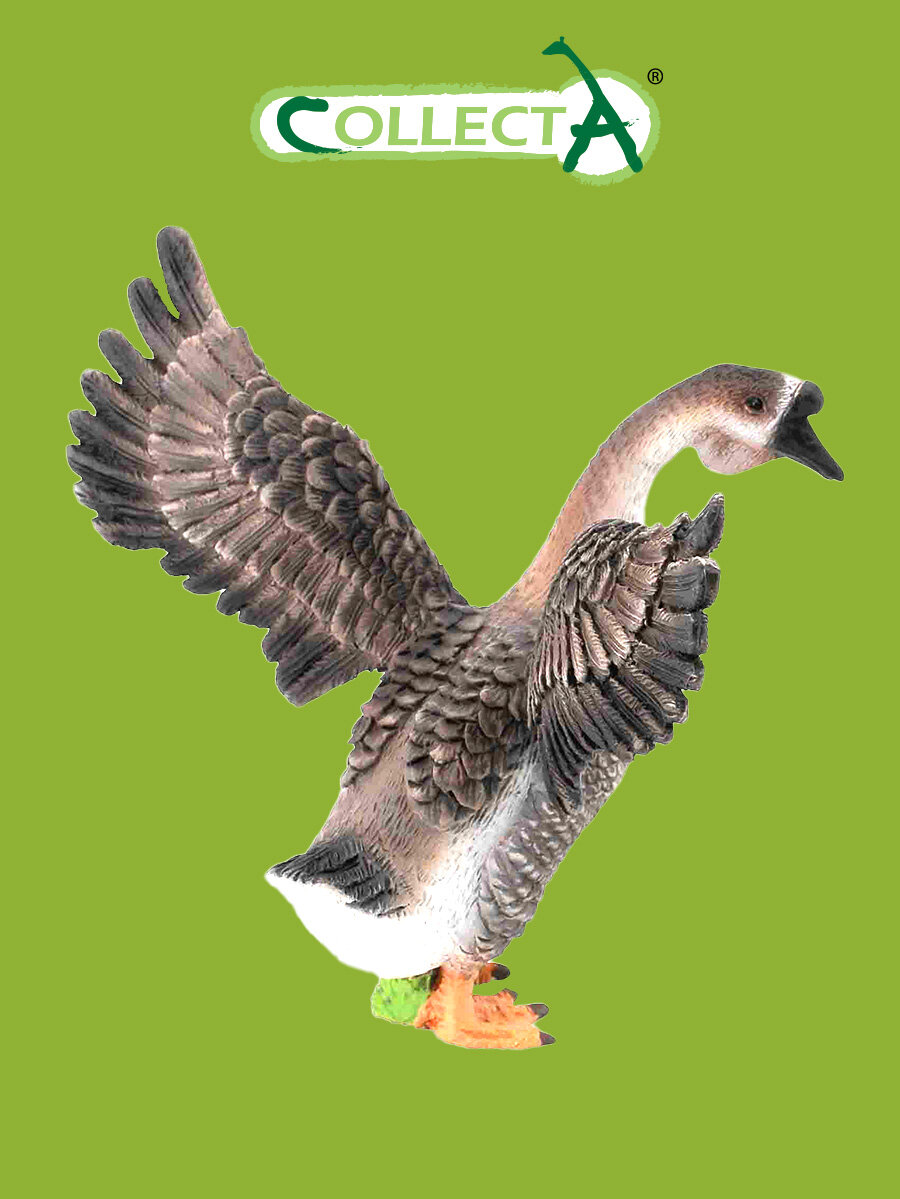 Гусь от компании Collecta - это небольшая фигурка птицы шириной 9 сантиметров, которая представляет из себя красивого серого гуся с расправленными в стороны крыльями. Фигурка может находится в устойчивом положении на любой ровной поверхности, поэтому ее можно спокойно поставить на книжную полку или письменный стол.