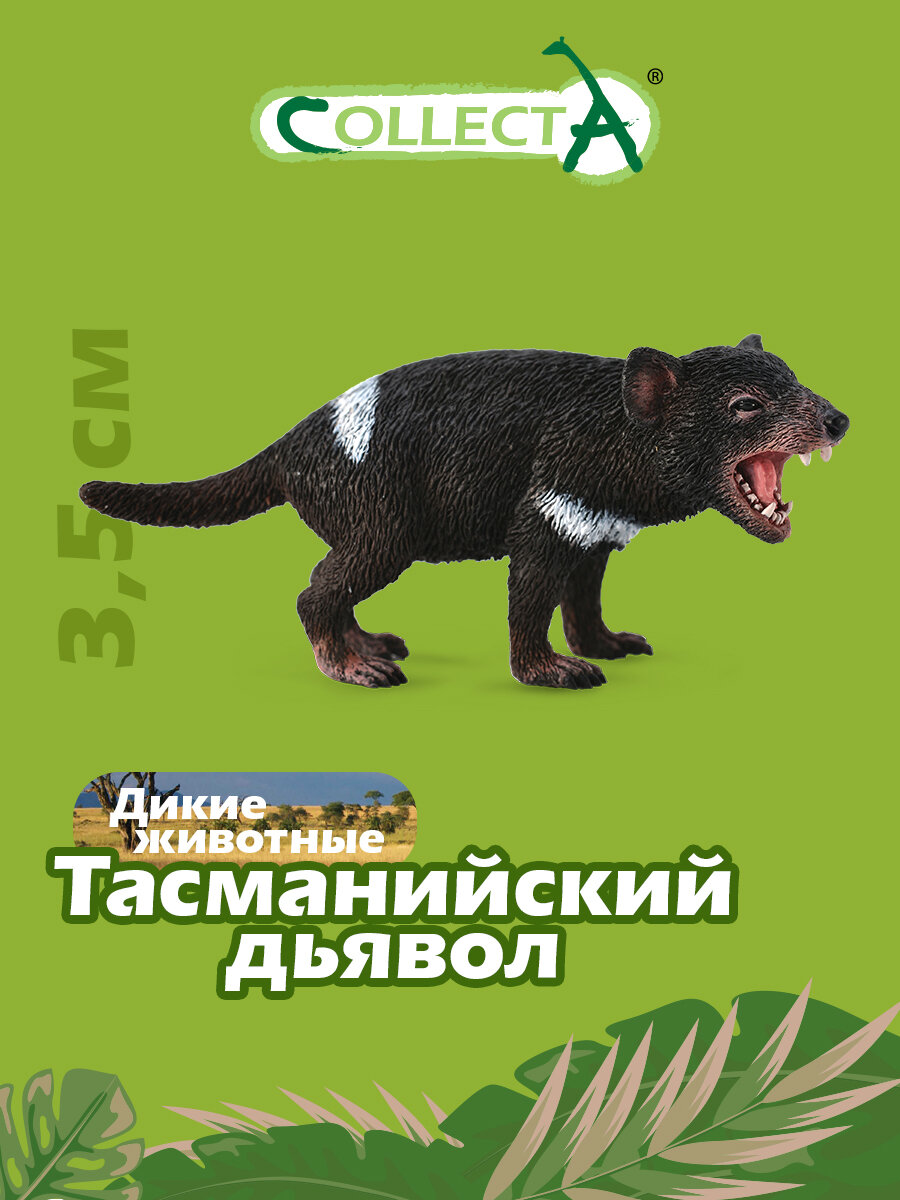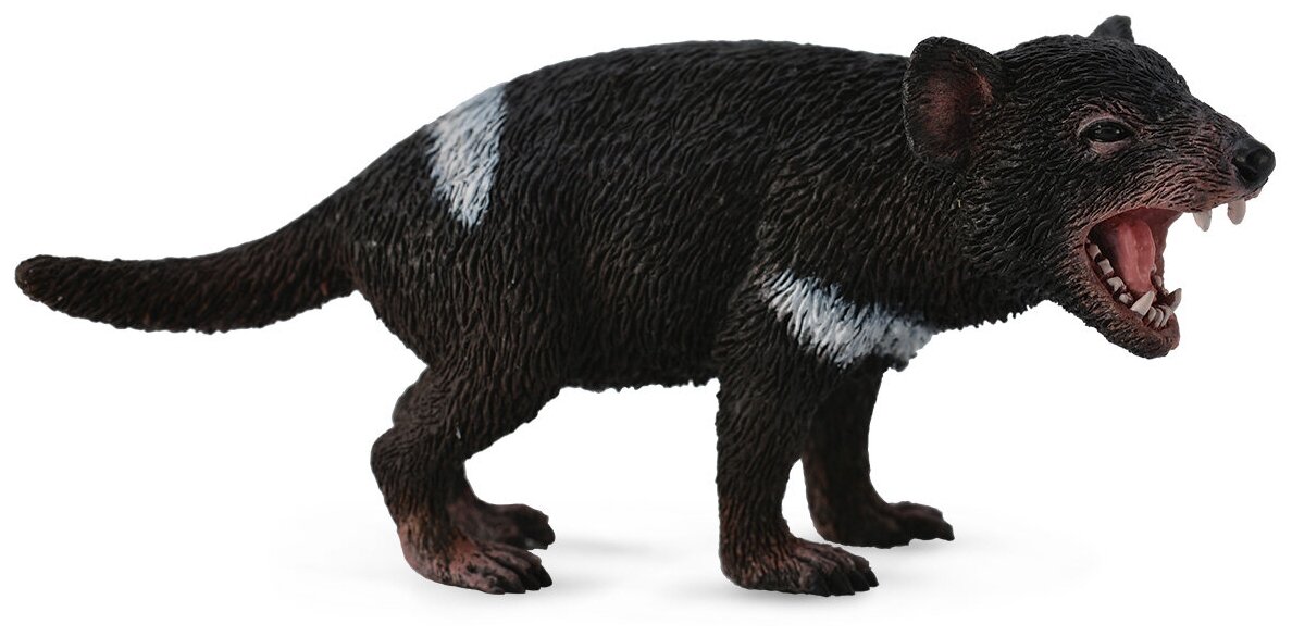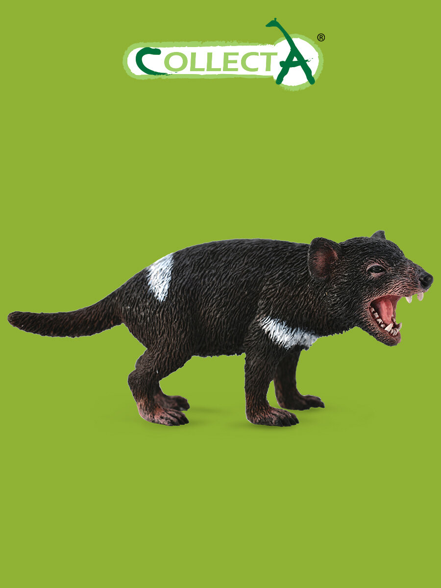 Это животное не даром имеет такое название, ведь местных жителей, прозвавших его так, пугали зловещие вопли этого животного, а его черная шерсть и острые зубы не вызывали доверия. Проживающий на острове Тасмания, сумчатый дьявол некогда находился на грани вымирания, но его популяцию удалось спасти. Особенности: Данная фигурка подходит детям старше трехлетнего возраста. Она изготовлена в виде одного из представителей млекопитающих – Тасманийского дьявола.