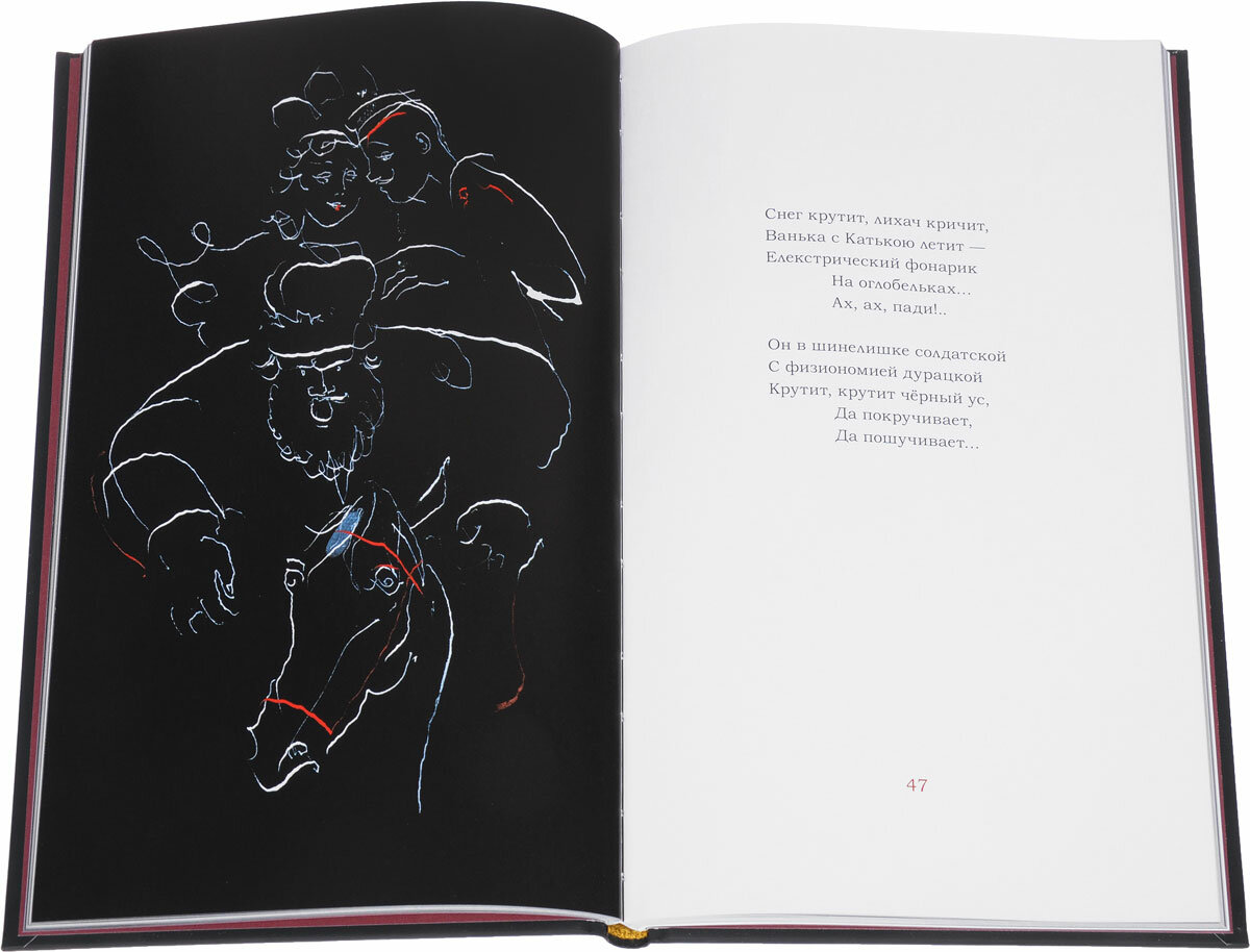 Одна из немногих поэм, которые я знаю наизусть. Замечательное издание проиллюстрированное художником Трауготом, каждый разворот которой идет со своей иллюстрацией, заслуживающей отдельной похвалы и восхищения. Толстая мелованная бумага, контурные рисунки зачастую на черном фоне получились невероятными и революционная атмосфера передана мне кажется отлично. Интерпретация содержания вызывает споры и до сих пор, ясно читается боль, жестокость, массовые убийства, кровь. Тяжелый и настоящий памятник литературы 17 года.