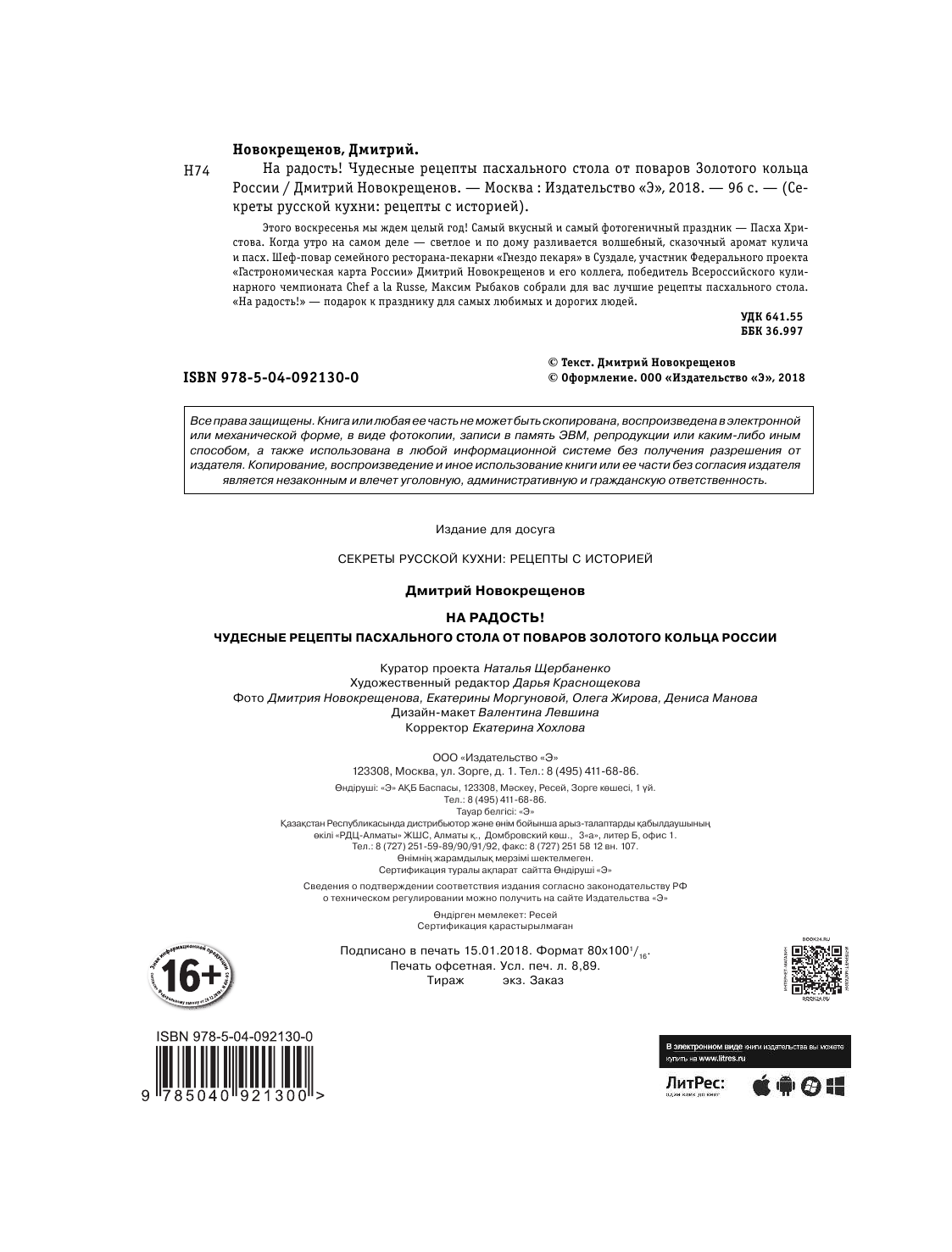 На радость! Чудесные рецепты пасхального стола от поваров Золотого кольца России (Новокрещенов Дмитрий); ООО "Издательство "Эксмо", 2018