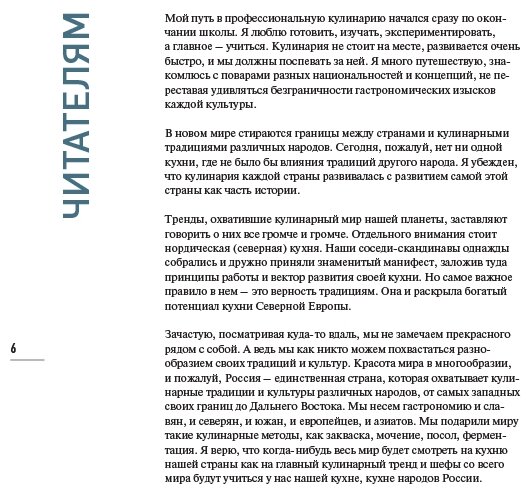 Нордическая скандинавская кухня — актуальный гастрономический тренд. Россия, страна, пятая часть которой находится за Полярным кругом, может гордиться своими традициями и культурой. Северная кухня народов России способна стать новым модным направлением. Она подарила миру такие кулинарные методы, как закваска, мочение, посол, ферментации. Автор книги — исследователь северной кухни, шеф-повар ресторана в Перми — собрал для вас уникальные рецепты русского Севера от Карелии до Камчатки. Невероятные блюда из дичи, северных ягод, национальная выпечка, а также яркие истории про северную гастрономию. "Север греет" — это увлекательное путешествие по невероятно красивому, суровому и мудрому миру российской северной кухни.