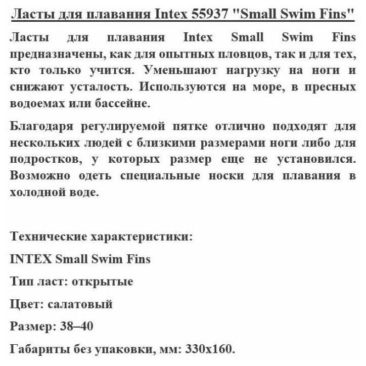 Сервис сравнения цен СкидкаГИД предлагает сравнить цены на товар «Ласты для плавания Intex Medium Swim Fins Small Swim Fins (размер: 38 – 40)»