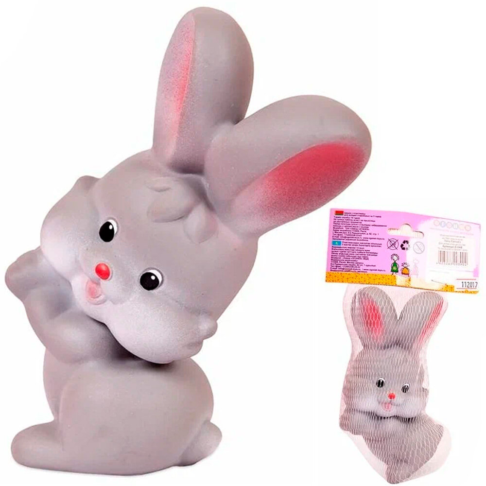 Игрушка Заяц Ерошка выглядит крайне очаровательно. Зайчик сложил передние лапки под головой и радостно смотрит на любого, кто возьмет его в руки. От взгляда на такого милашку невозможно не растаять! Игрушка изготовлена из ПВХ, поэтому не портится от воды: с зайчиком можно гулять в любую непогоду, не боясь грязи - отмыть его легко и просто после любого путешествия.