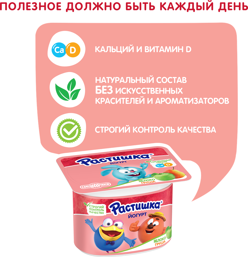 - Кисломолочные и молочные продукты «Растишка» соответствуют всем требованиям к здоровому питанию детей дошкольного и школьного возраста.