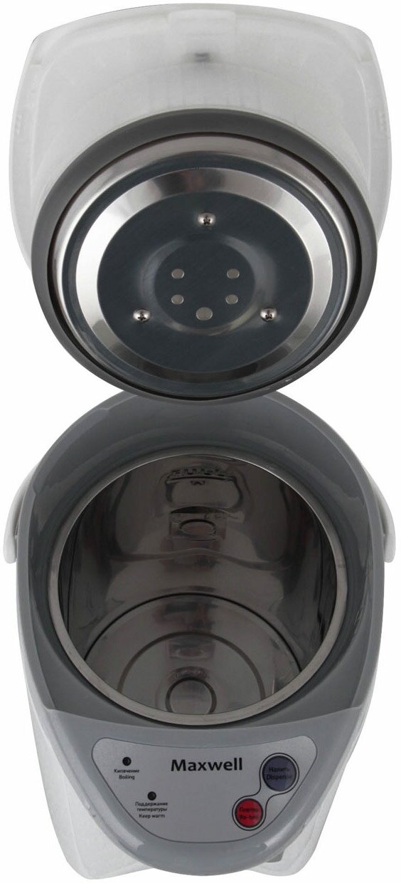 Термопот Maxwell MW-1056 Мощность 730 Вт. Повторное кипячение 3 способа подачи воды Термопоты Maxwell – надежная техника с массой полезных функций Термопоты сегодня – это не просто модные приборы для кухни. Это практичная техника, которая способна заменить любой современный электрический чайник. Они совмещают в себе функции чайника и термоса, за счет чего особенно популярны в офисных помещениях, где горячая вода необходима постоянно.