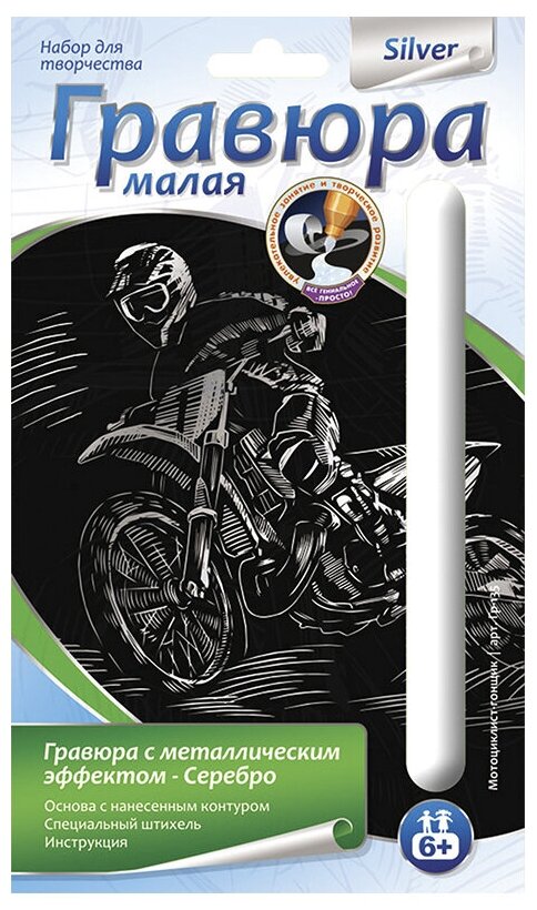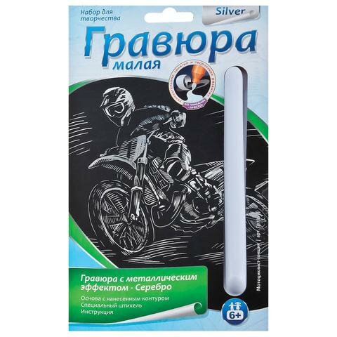 На сегодняшний день товар «Гравюра Lori малая с эффектом серебра Мотоциклист-гонщик (Гр-135)» можно купить с кешбеком в 1 магазине: Яндекс.Маркет