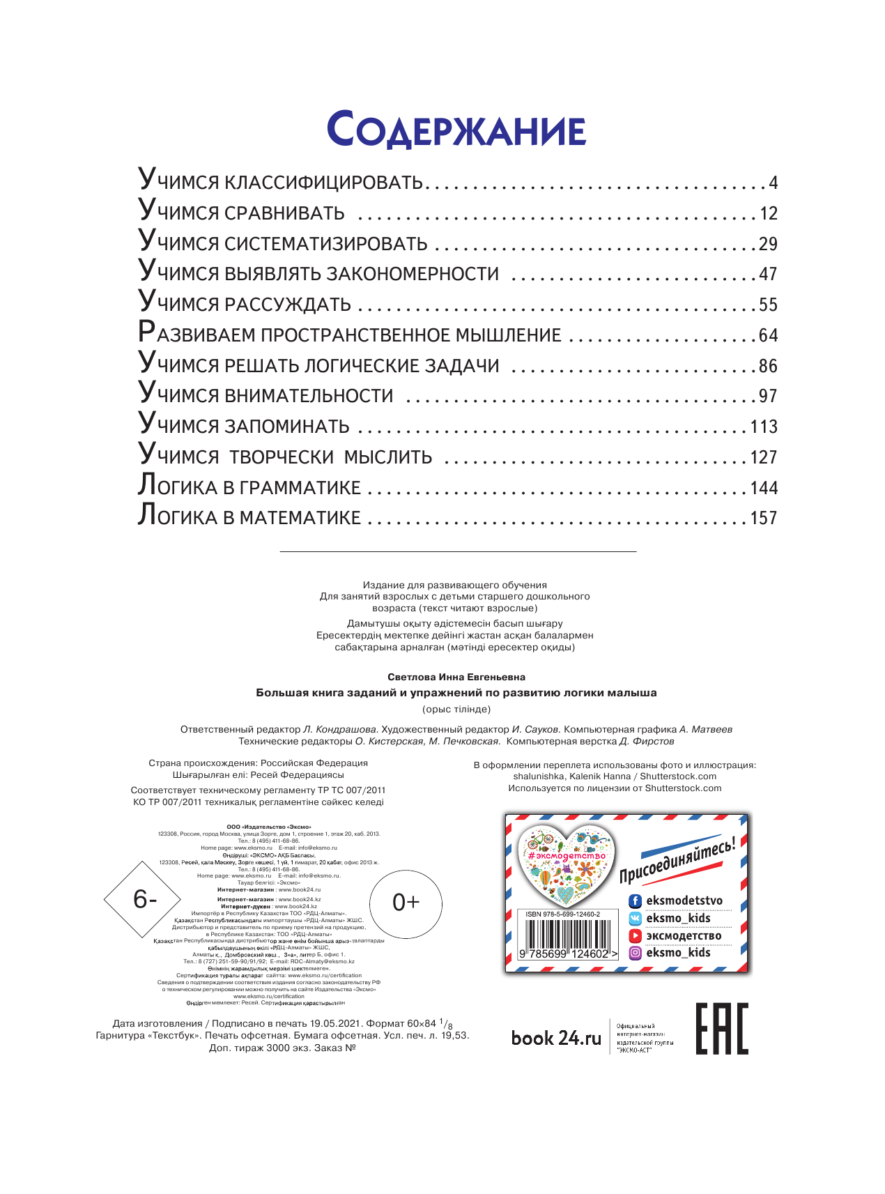 Большая книга заданий и упражнений по развитию логики малыша (Светлова Инна Евгеньевна, и другие, Нитылкина Евгения В.); ООО "Издательство "Эксмо", 2005