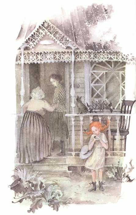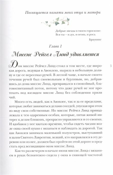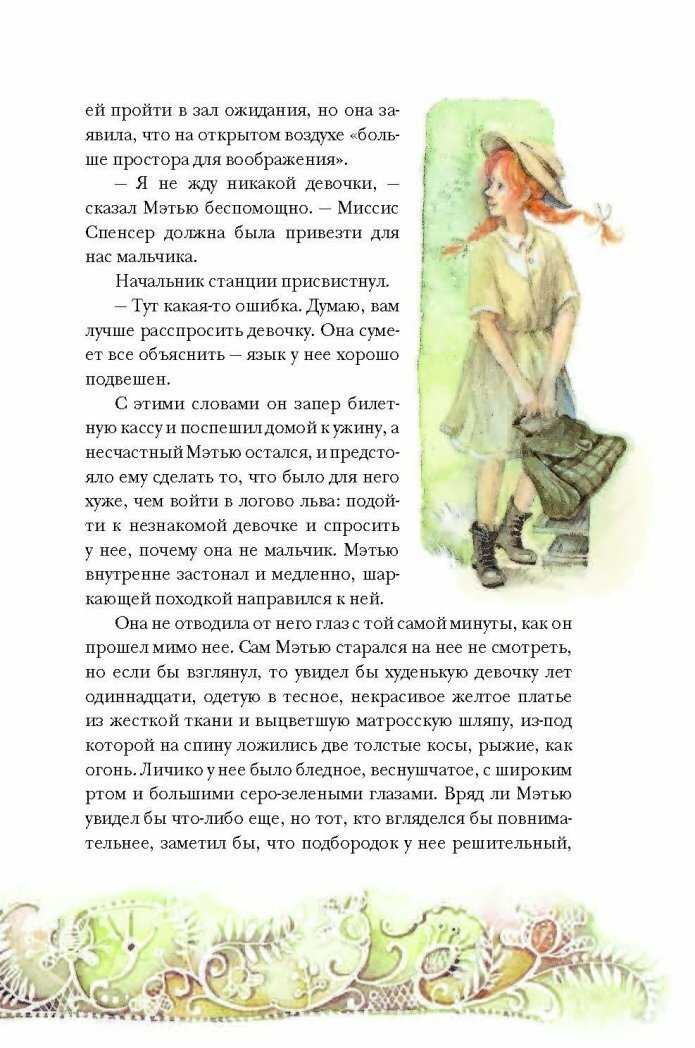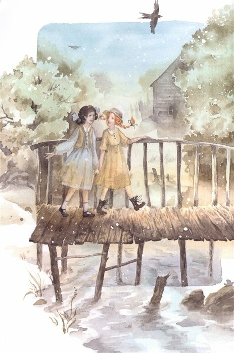Да простят меня ревнители оригинальных, неадаптированных текстов, но, держа в руках это прекрасное издание, я меньше всего думала о том, что переводчик слегка сократил текст романа. Думаю, листая страницы этой тяжелой (почти 700г!) книги с восхитительными акварельными иллюстрациями художницы Марии Рязанцевой, читатель любого возраста с головой погрузится в атмосферу фермы Зеленые Мезонины и, как и героиня романа, даст волю своему воображению. Спасибо, что именно этот томик заставил вспомнить то радостное, детское - «Ах, какая книга!». Возможно, влюбившись в роман после прочтения именно этого издания, позднее кому-то захочется прочесть его полный текст и на русском языке, и на языке оригинала. Многочисленные переиздания на разных языках доказывают, что он того стоит.