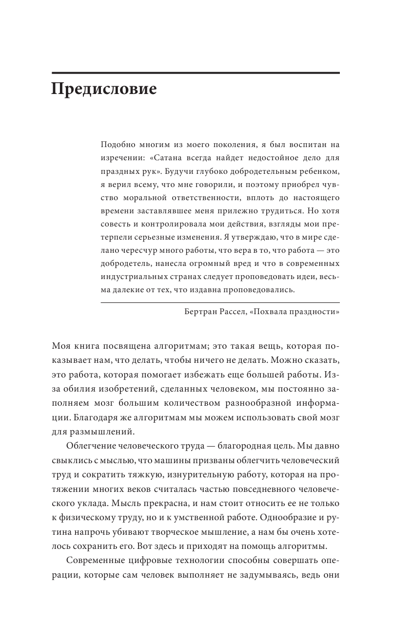 Стать востребованным программистом совсем не просто. Недаром зарплата программистов с каждым годом только растет, и специалистов катастрофически не хватает. Надо хорошо владеть не только языками программирования. Нужно обладать особым способом мышления. И в том числе знаниями алгоритмов. Эта книга познакомит вас с основами и раскроет тайны сложных алгоритмов. Обязательна к прочтению и изучению! Книга не только содержательна. Замечательно то, что язык изложения материала весьма изящен и легок. Ознакомьтесь с содержанием, и вы поймете, насколько автор остроумно подошел к раскрытию столь сложной темы. Ставлю 10 балов из 10 возможных. А книгу к себе в библиотеку, чтобы была всегда под рукой.