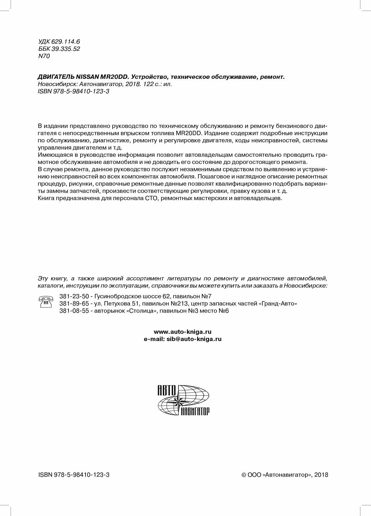 Nissan MR20DD. Бензиновый двигатель 2.0 л с непосредственным впрыскомтоплива. Устройство техобслуживание ремонт (Коллектив авторов); Автонавигатор, 2018