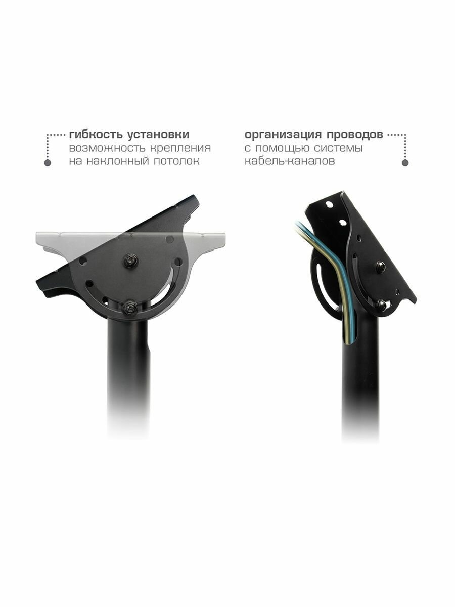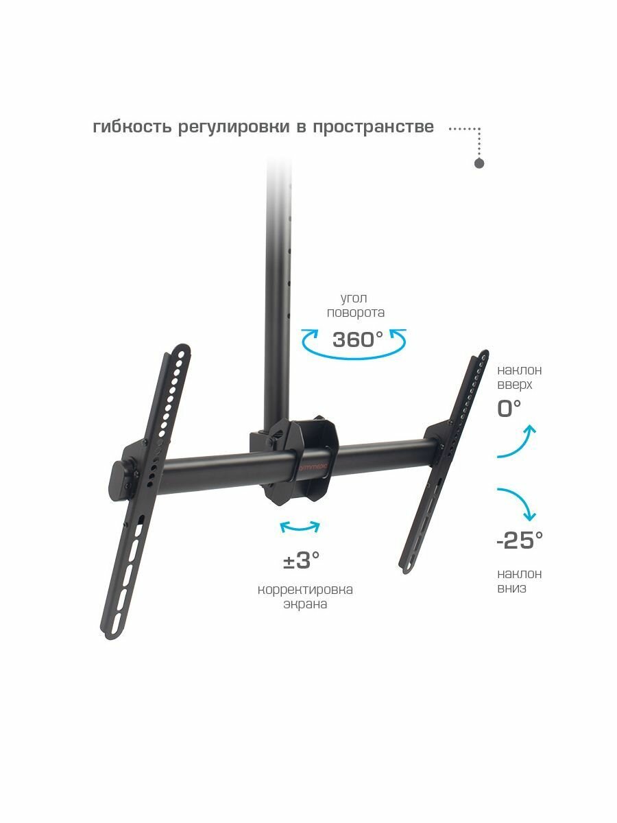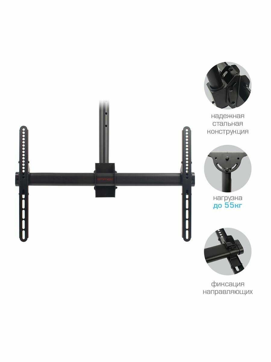 Телескопический потолочный наклонно-поворотный кронштейн в черном цвете для телевизоров и мониторов с диагональю от 32 до 90 дюймов весом до 55 кг.