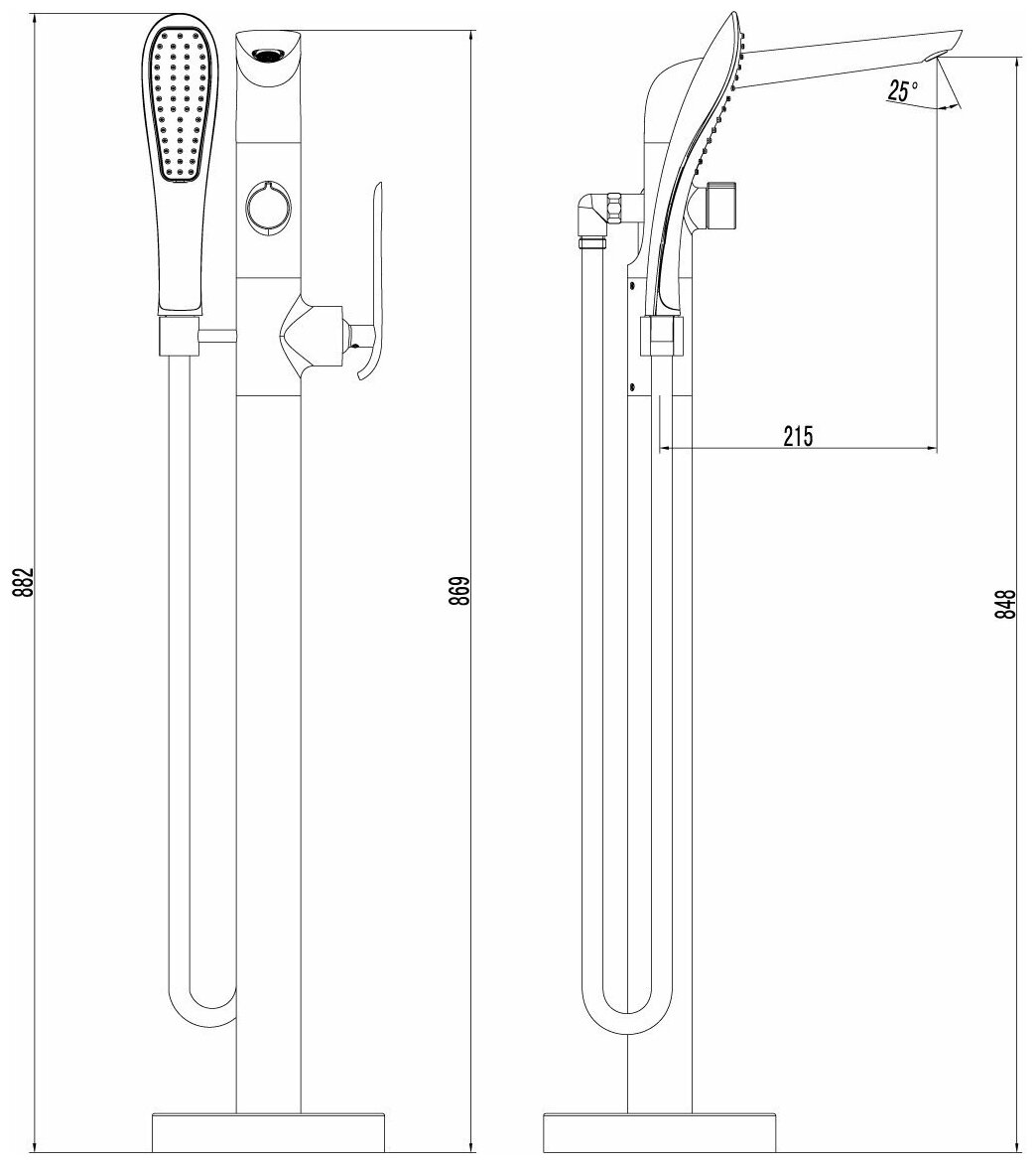 | Дополнительные функции | излив для наполнения ванны, ручной душ |