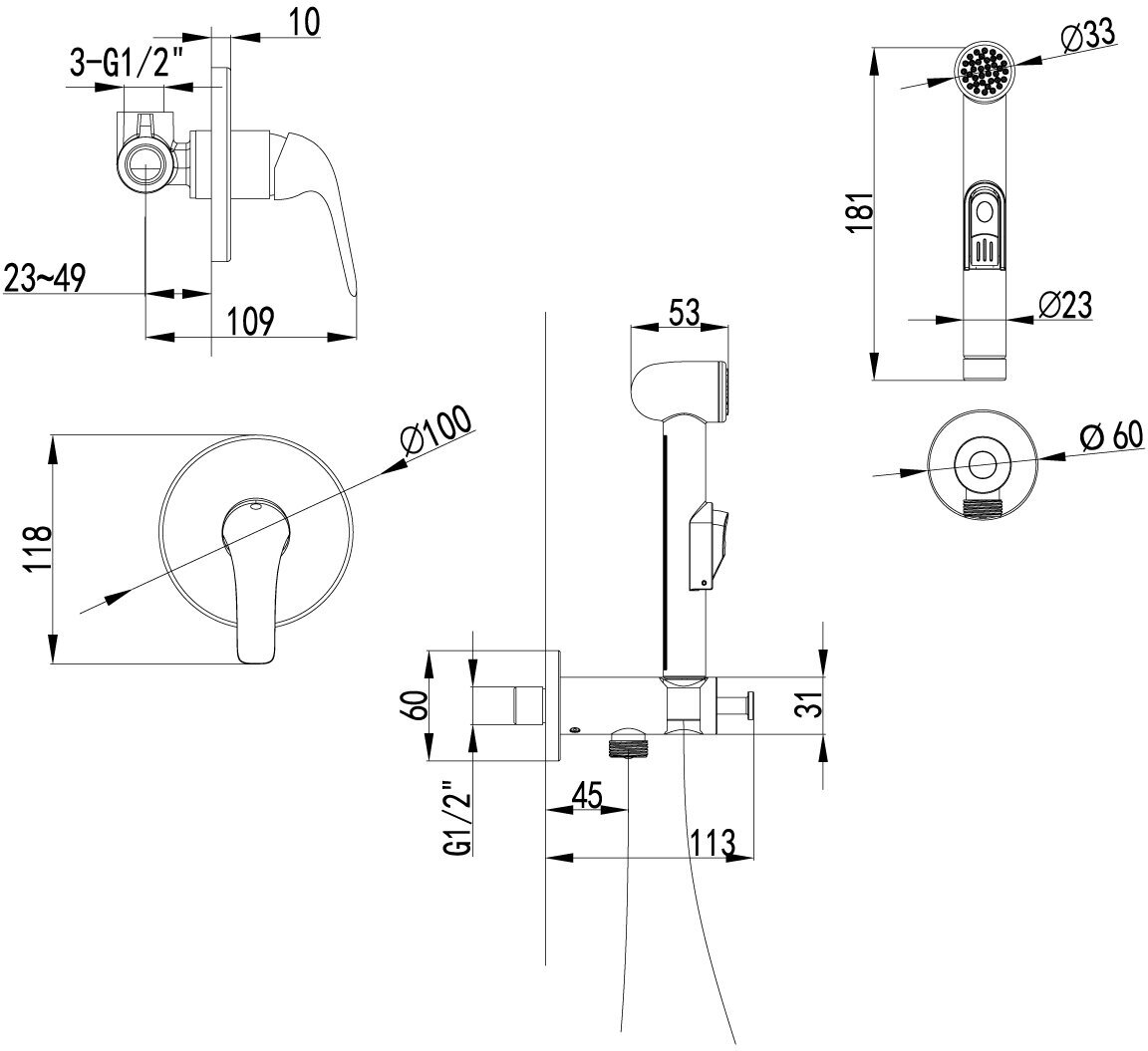| ВКоробке | Гигиенический душ - 1 шт. Шланг - 1 шт. Смеситель - 1 шт. Внутренняя часть - 1 шт. Шланговое подключение с держателем - 1 шт. Инструкция - 1 шт. |