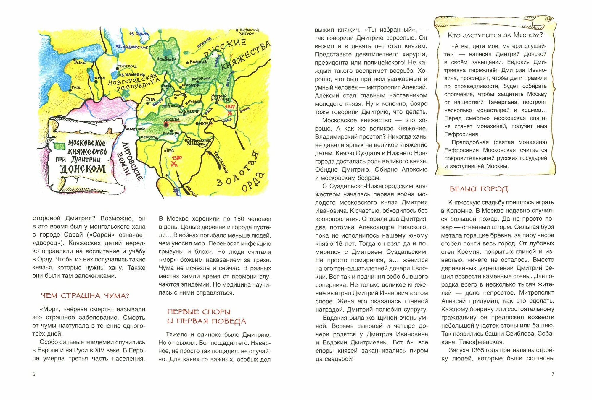 Дмитрий стал князем всего в девять лет и княжил тридцать. Многое изменилось при нем на Руси. Расширились границы Московского княжества, а в Москве начали строить первый каменный Кремль. Было время "великой тишины". Были сражения проигранные и победные. Среди них - известная всем Куликовская битва, после которой Дмитрий стал называться Донским.