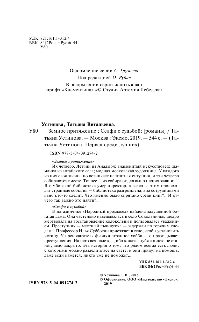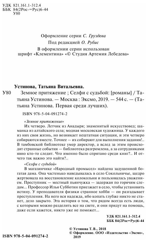 Земное притяжение. Селфи с судьбой (Устинова Татьяна Витальевна); Эксмо, Редакция 1, 2018