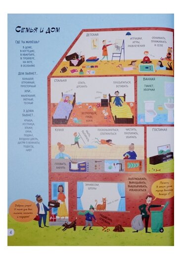 Самые первые слова малыша об окружающем мире, красочные иллюстрации и пояснения к ним. С помощью этой замечательной книги ребенок научится определять и называть то, что его окружает. Он узнает о строении цветов и деревьев, о частях тела человека и животных, сможет описывать людей и их эмоции. Книга расскажет о том, что можно увидеть в городе и на природе, какая бывает погода, познакомит с местами обитания на Земле. Ребенок запомнит более 1000 новых слов.