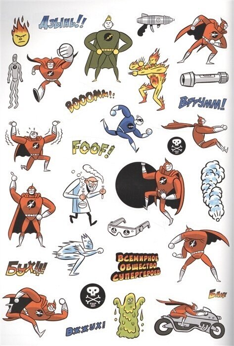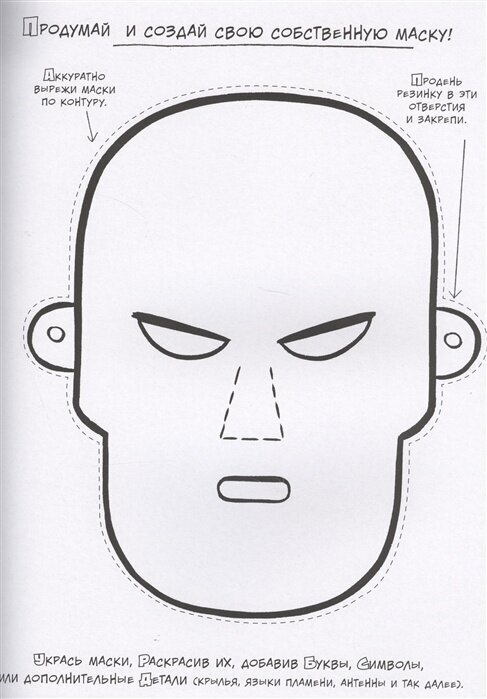 Как выглядит твой герой? Какая у него суперсила? На чем он передвигается? С кем борется? Включи фантазию и с помощью пошагового руководства и творческих заданий создай свою собственную супервселенную. А набор супергеройских масок и заряженных суперсилой наклеек поможет тебе в этом.