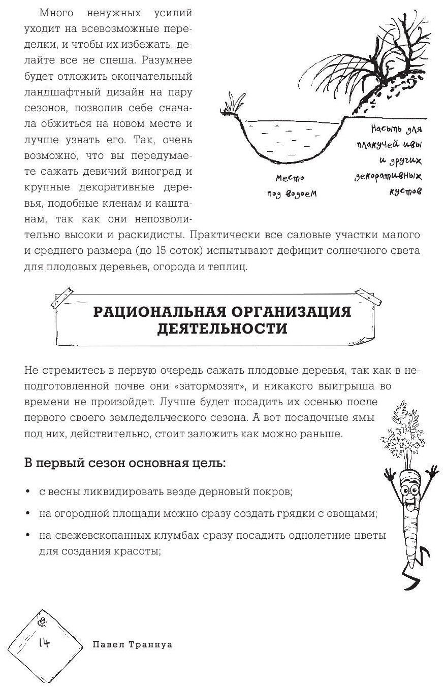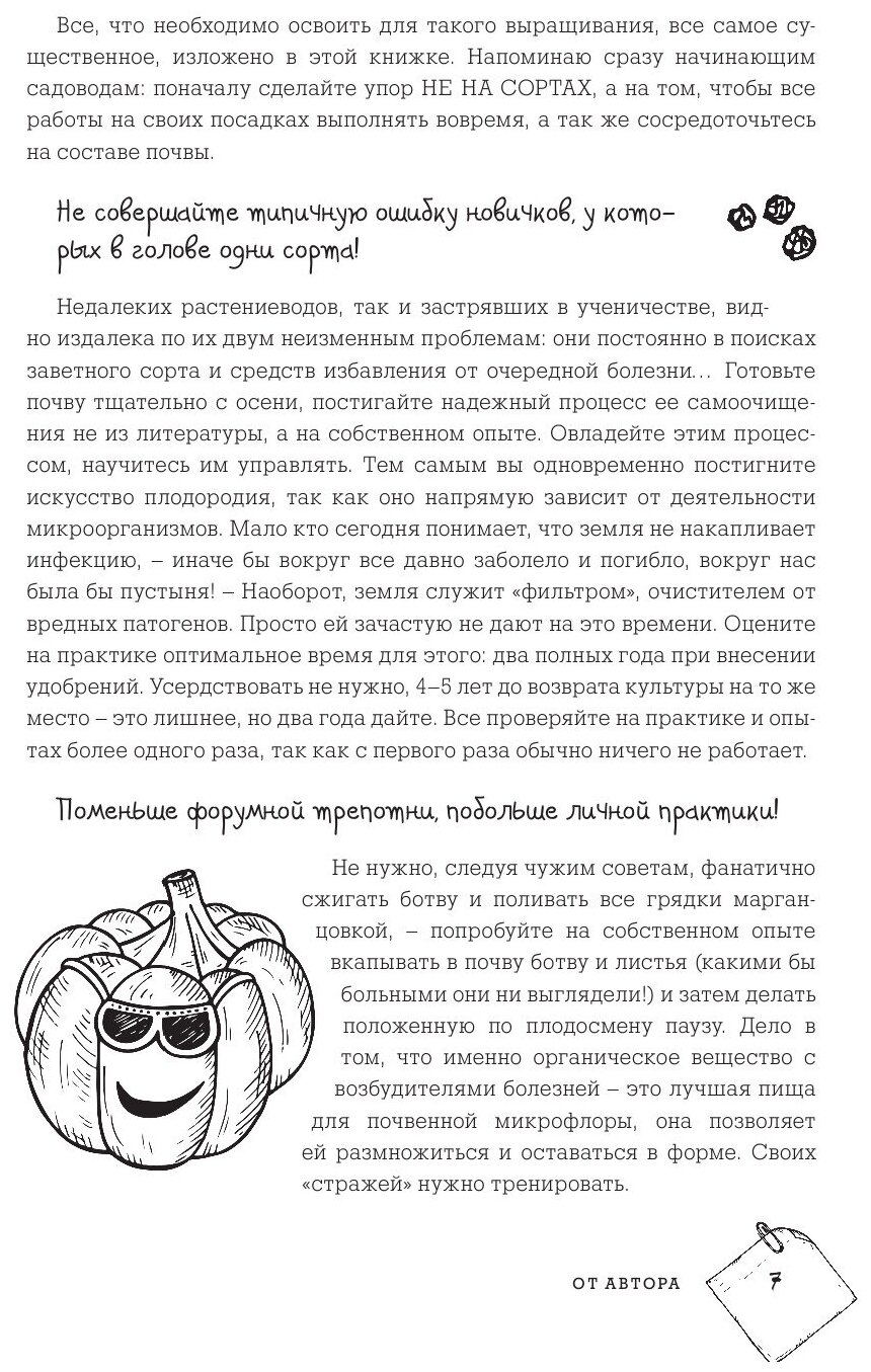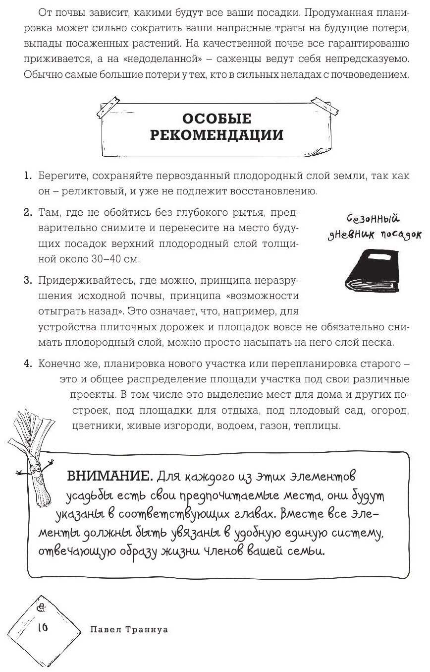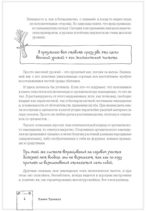 Новая книга известного автора-почвоведа Павла Траннуа написана для тех, кто независимо от опыта в земледелии хочет научиться содержать свой участок еще эффективнее и интереснее. Главный девиз этой книги: "Высокий урожай и его экологическая чистота!" Практические рекомендации и забавные иллюстрации позволят читателю легко и просто усвоить, как правильно спланировать свой участок, подготовить почву для каждого растения, посеять газон, украсить участок живой изгородью и цветами, получить урожай без применения химии и научиться рационально использовать свое время и усилия.