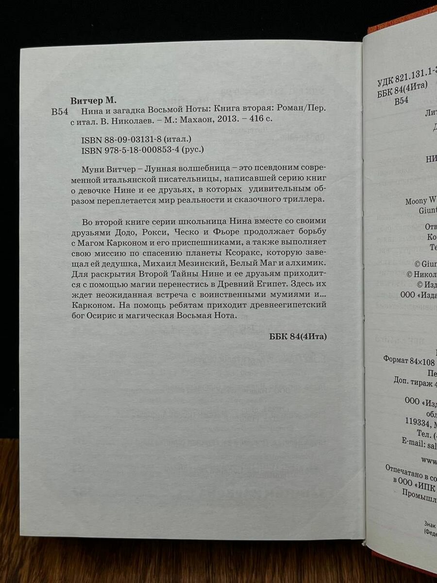 Нина и загадка восьмой ноты 2-я книга (Витчер Муни); Махаон Издательство, 2005