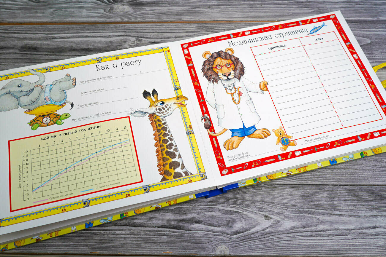 Этот альбом - для фотографий и воспоминаний о самых ярких моментах первого года жизни вашего малыша. Когда ваш малыш вырастет, вам будет очень интересно вместе с ним листать страницы этого альбома.