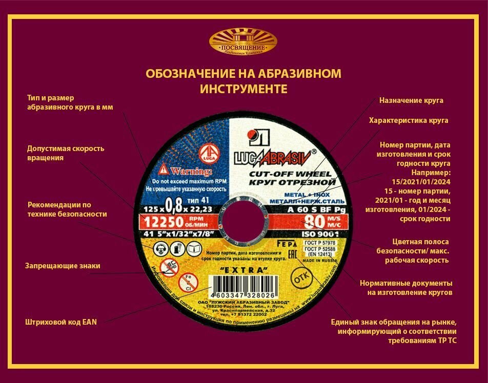 Отрезной круг по металлу и нержавейке ЛУГА-АБРАЗИВ »