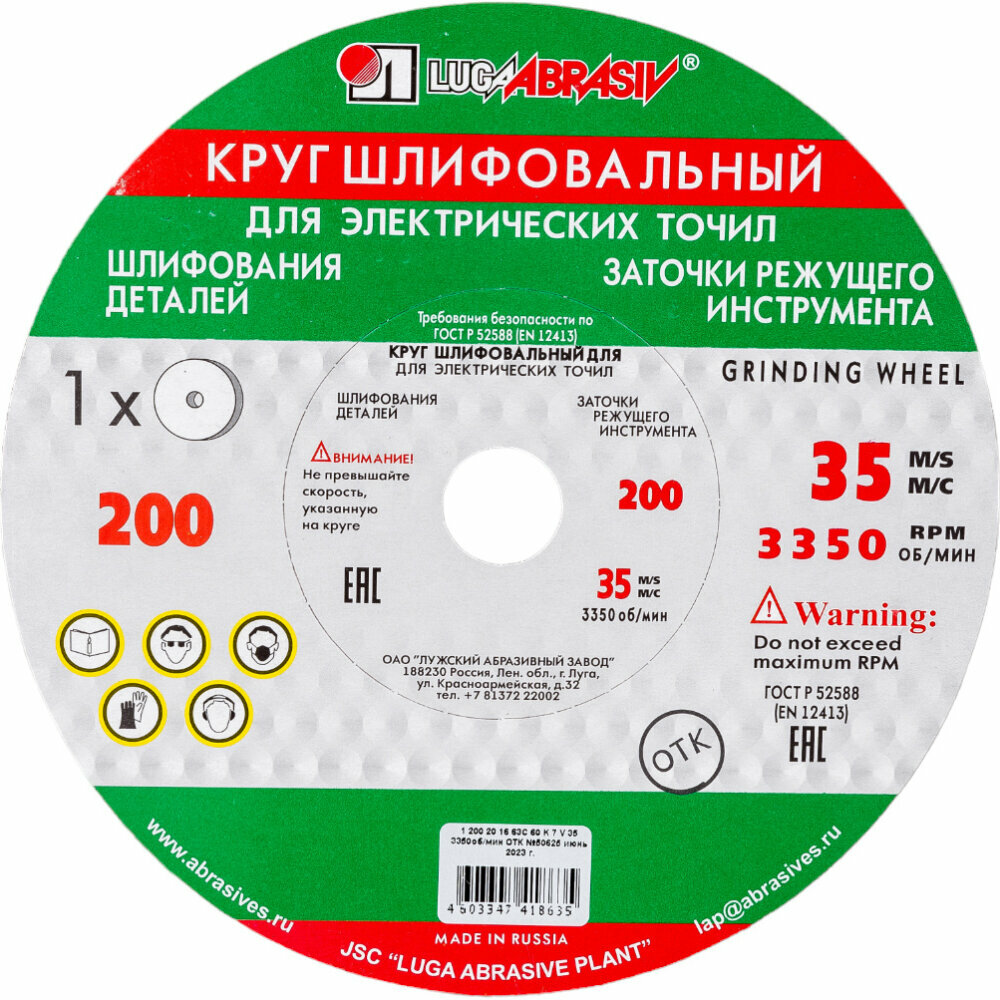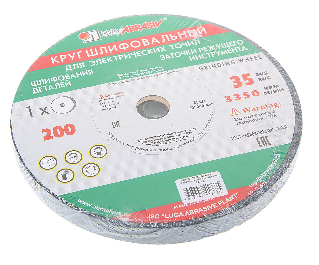 Круг шлифовальный Luga-Abrasiv ЛУГА-АБРАЗИВ 1 200 Х 20 Х 16 63С 60 k,l