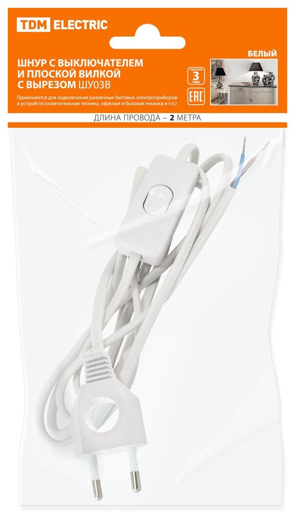 Назначение:Для использования потребителями в бытовых целях – подключение бытовых приборов, осветительной техники и т. д.Применение:Жилые помещения (дома, квартиры и т. д.).Объекты коммерческой недвижимости (офисы, торговые центры и т. д.).Инфраструктурные объекты (больницы, школы и т. д.).Преимущества:Большое количество цветов позволяет наиболее точно подобрать шнур к интерьеру и светильнику.Выключатель для удобства эксплуатации электроприбора.Простота подключения, не требующая специальных навыков.Вилка подходит как к современным, так и к устаревшим розеткам.Каждое изделие имеет яркую индивидуальную упаковку со стикером, на который нанесена вся необходимая информация о изделии и штрихкод EAN-13. (вставить изображение)Материалы:Шнур выполнен из провода ШВВП сечением 0.75 мм2.Корпус светорегулятора выполнен из АБС-пластика