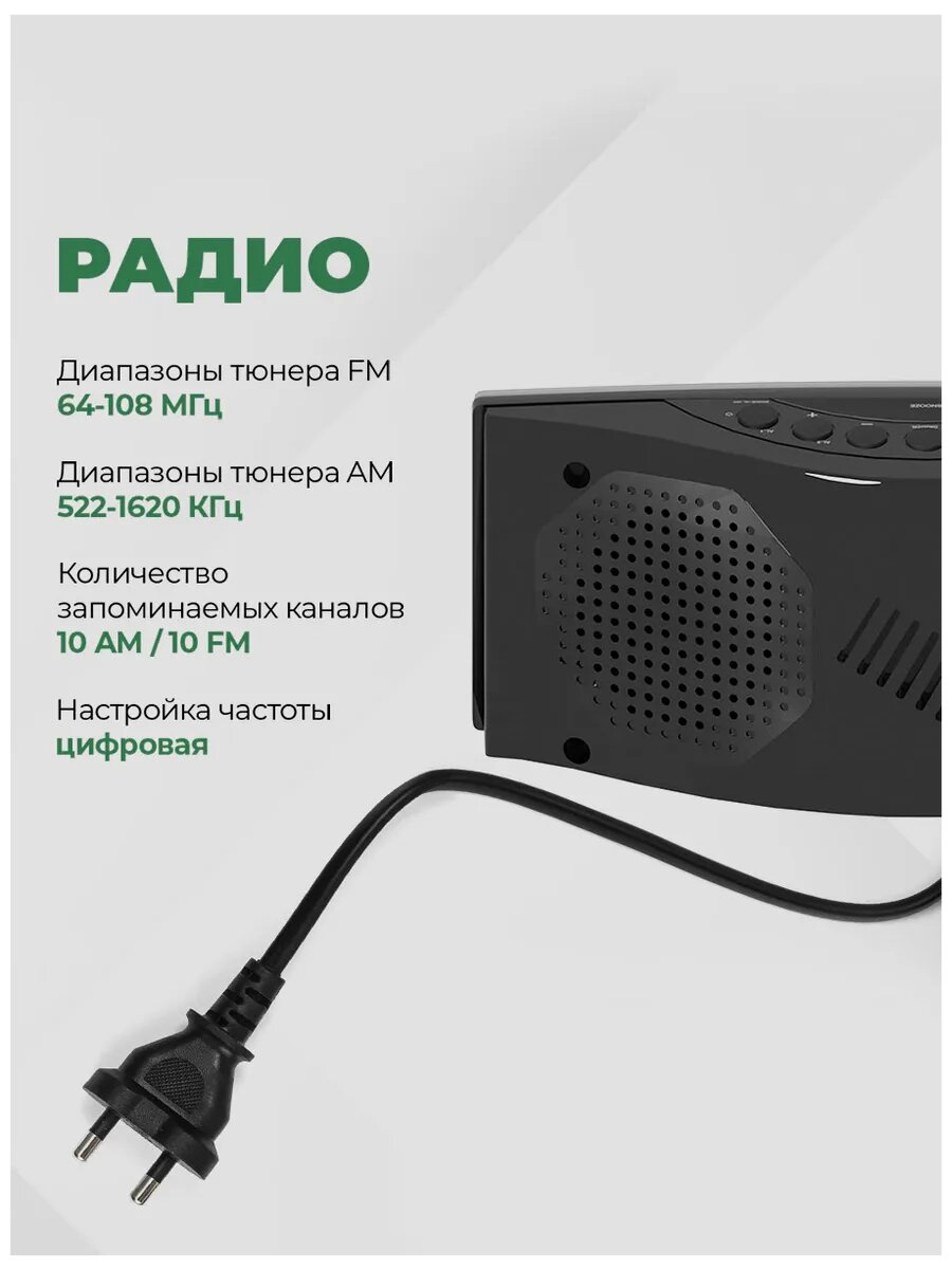 | Дополнительная информация | 2 будильника, батарейки служат только для сохранения настроек, таймер отключения радио |