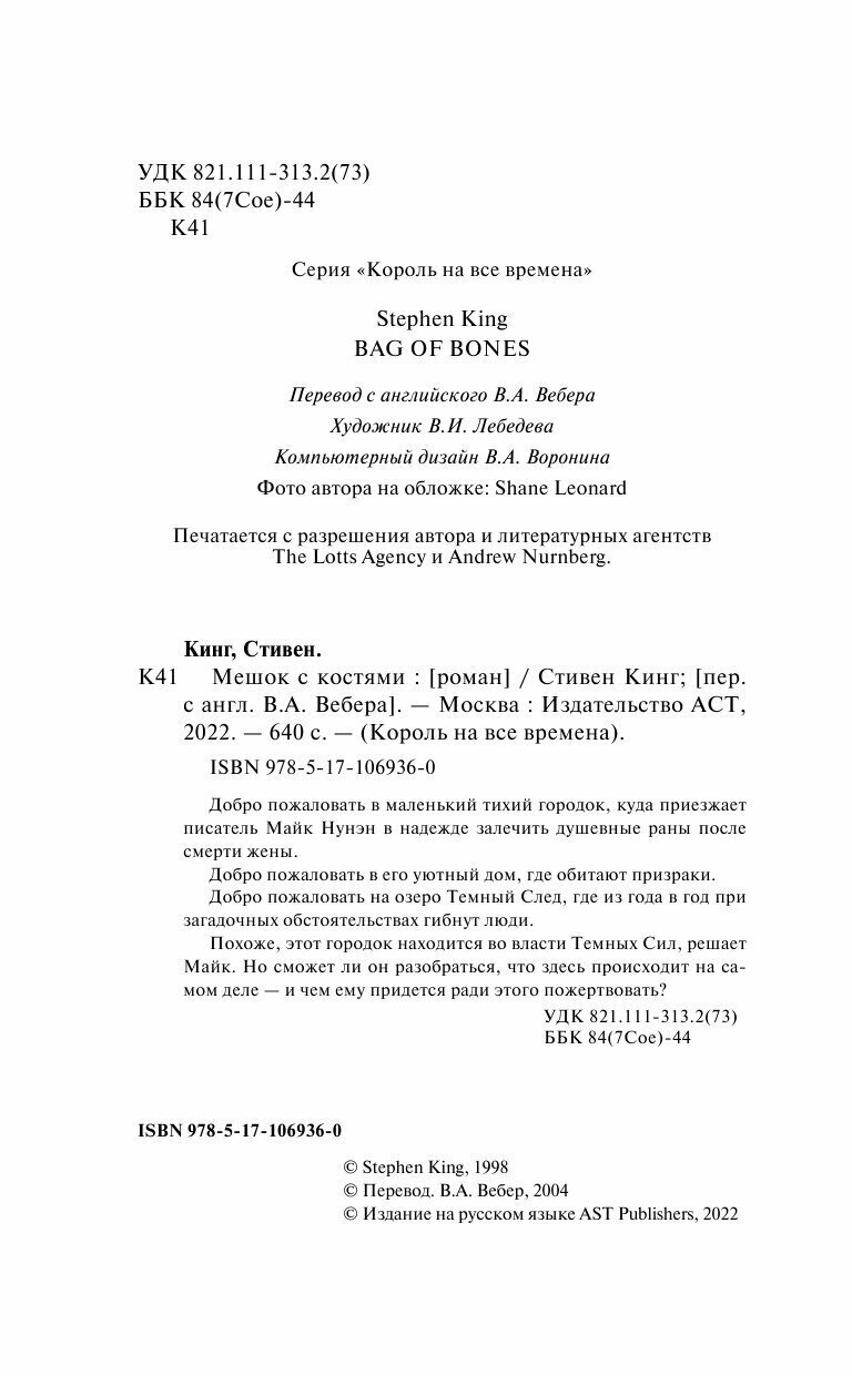 Книга: Мешок с костями (Кинг Стивен , Вебер Виктор Анатольевич (переводчик)); АСТ, 2021