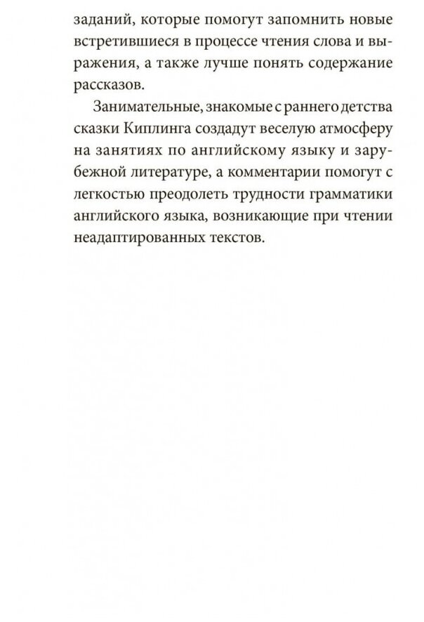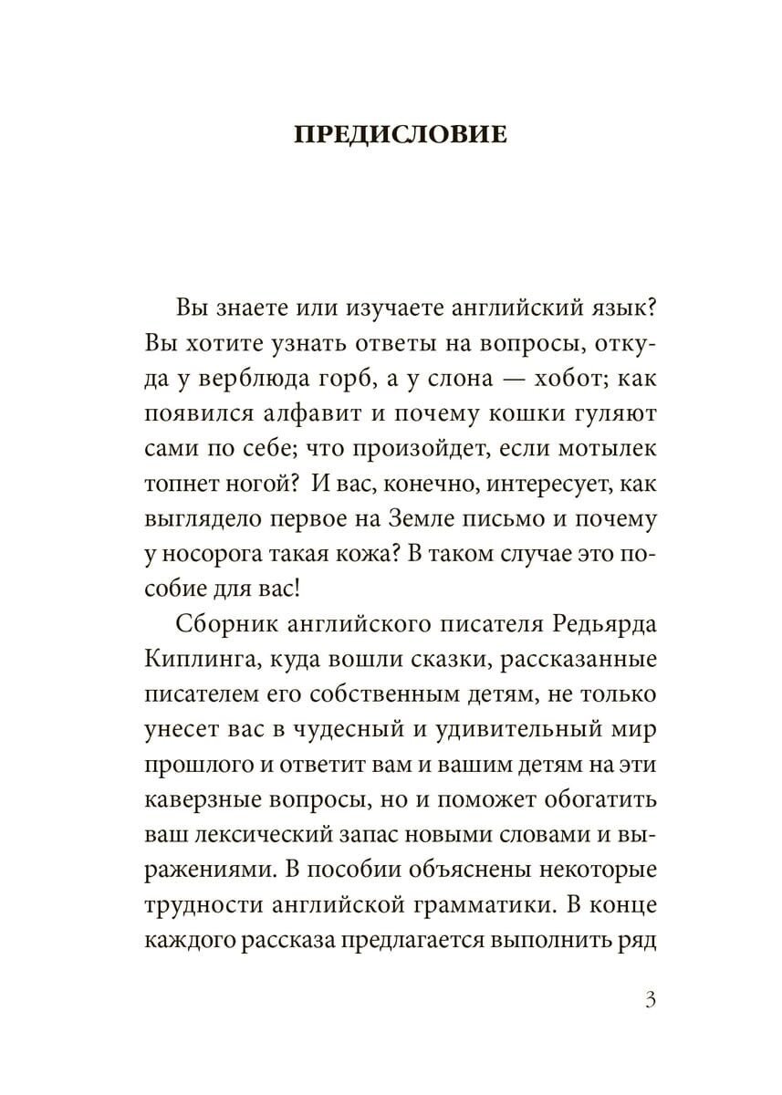 Сборник "Просто сказки", написанный английским писателем Р.Киплингом для его собственных детей, включает занимательные истории-ответы на вопросы детей. Откуда у слонов хобот, почему у леопарда пятнистая шерсть или почему верблюд горбатый, и как появился алфавит? Книга не только даст увлекательные ответы на эти каверзные вопросы, но и позволит обогатить словарный запас и знания по грамматике английского языка.