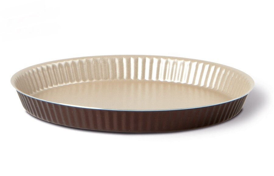 Круглая рифленая форма для торта TVS "Dolci Idee" изготовлена из высококачественного алюминия с внутренним антипригарным покрытием "Ipertek". Оригинальная по дизайну форма имеет внутренне покрытие золотистого цвета, а внешнее шоколадного. Стенки формы низкие и рифленые, что позволит без труда вынуть готовый корж. На дне формы имеется шелкотрафаретное нанесение рецепта вкусного торта. Форма предназначена для использования в духовом шкафу. Можно мыть в посудомоечной машине. Простая в уходе и долговечная в использовании форма для торта TVS "Dolci Idee" будет верной помощницей в создании ваших кулинарных шедевров. Диаметр дна 24 см.
