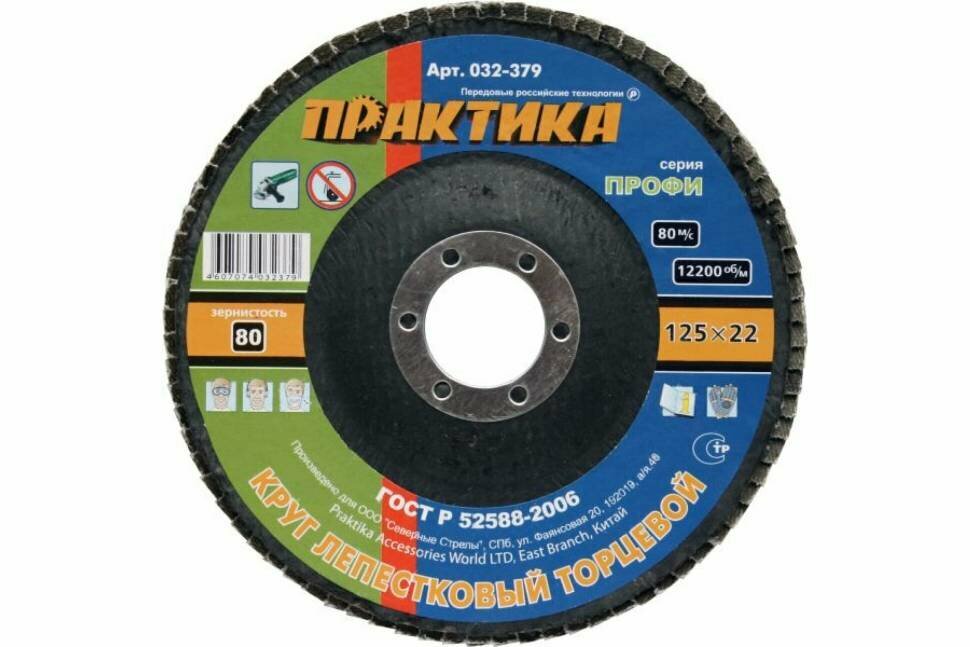 Лепесковый торцевой круг ПРАКТИКА 032-379 125х22мм, Р80