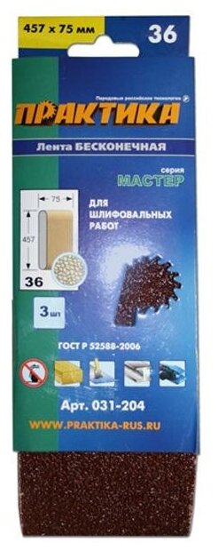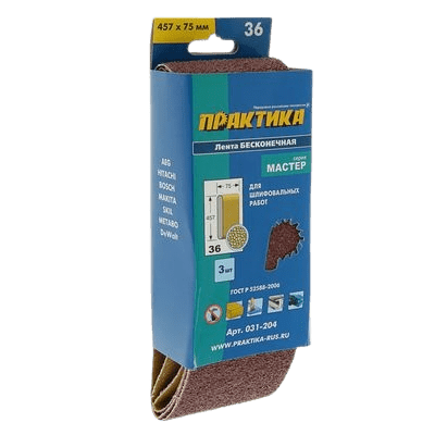 Шлифовальная лента ПРАКТИКА 031-204 75х457мм, p36, 3шт.