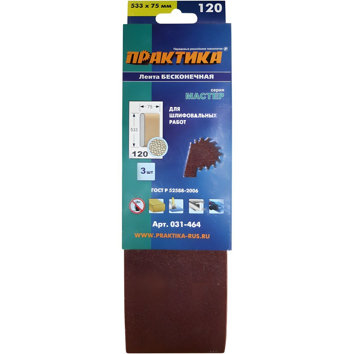 Шлифовальная лента ПРАКТИКА 031-464 75х533мм, p120, 3шт.