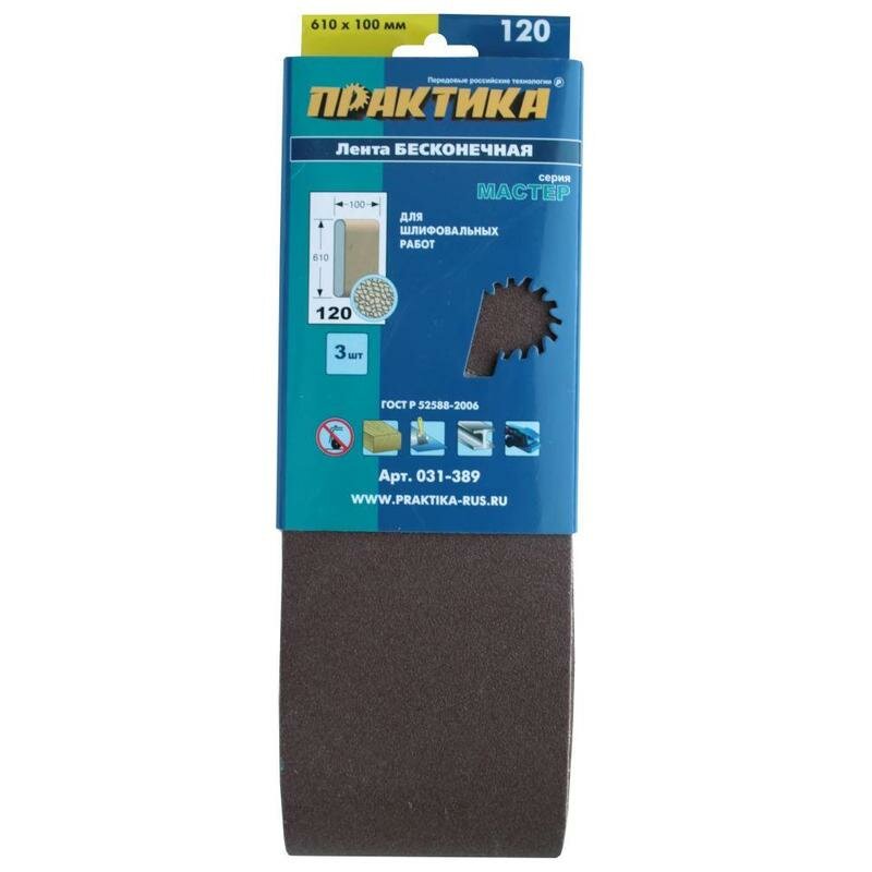 Шлифовальная лента ПРАКТИКА 031-389 100х610мм, p120, 3шт.