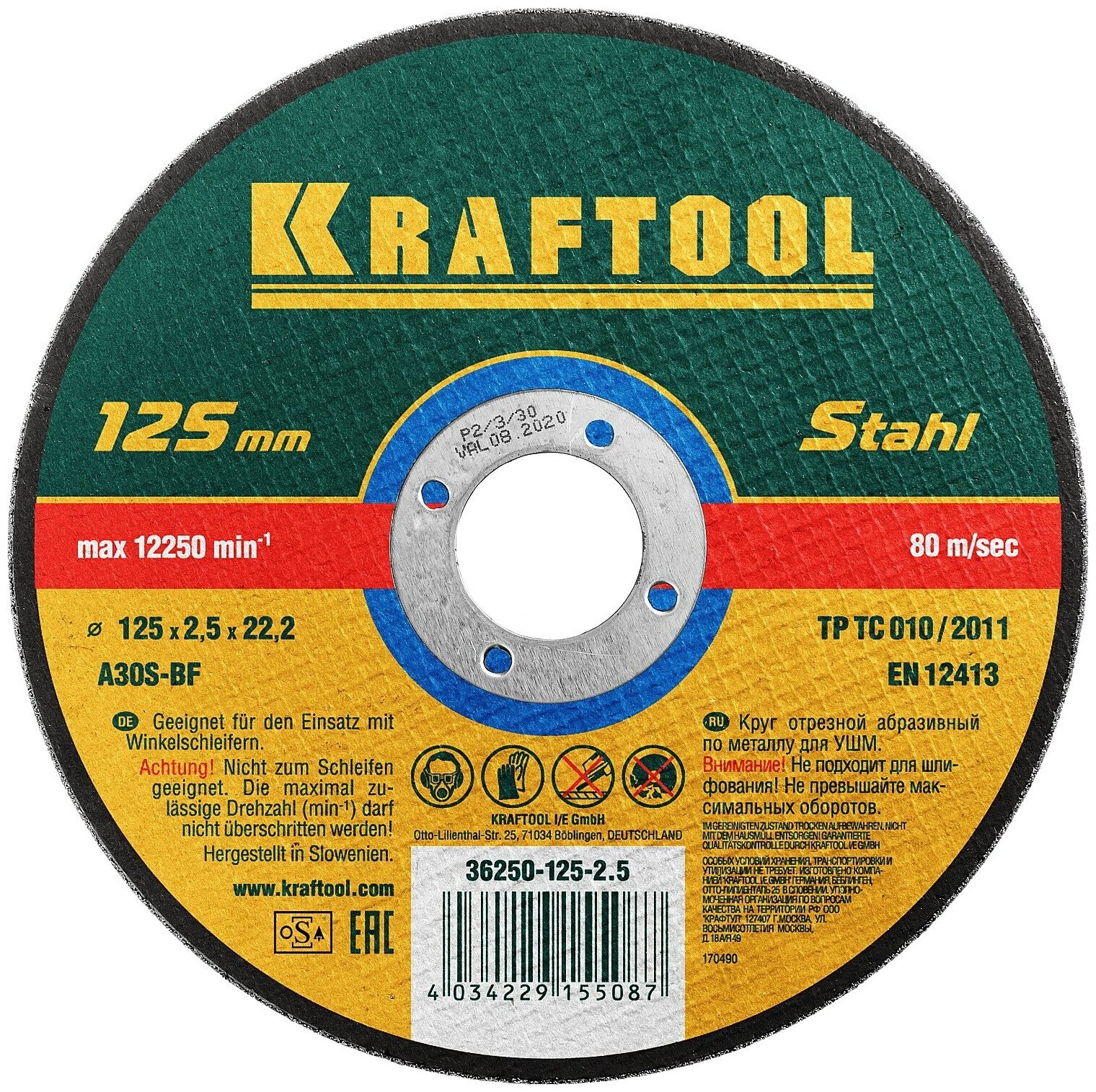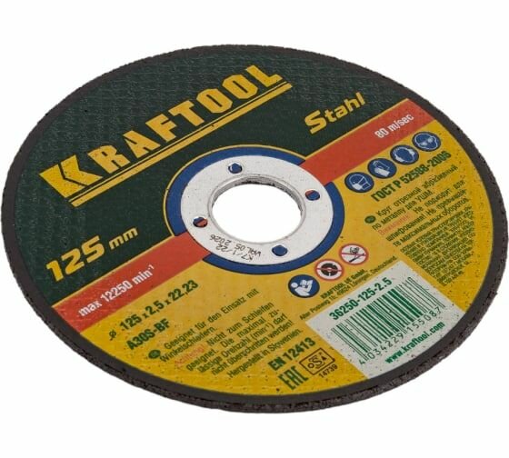 Абразивный отрезной круг по металлу для УШМ KRAFTOOL 36250-125-2.5