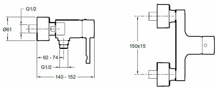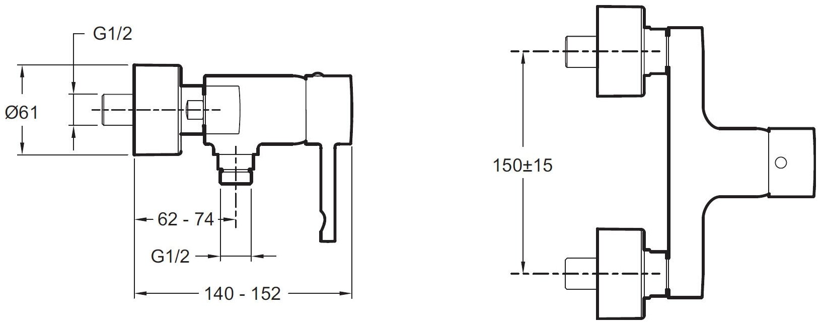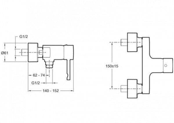 Модель, устанавливаемая на два отверстия в стене, оснащена литым корпусом с удобным рычагом управления. В нижней части изделия расположен отвод для подключения ручного шланга.