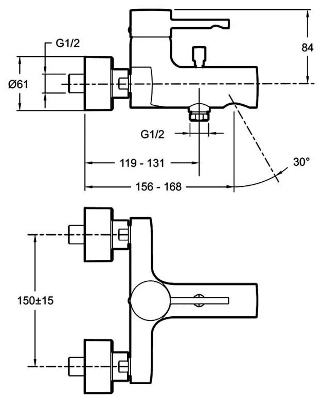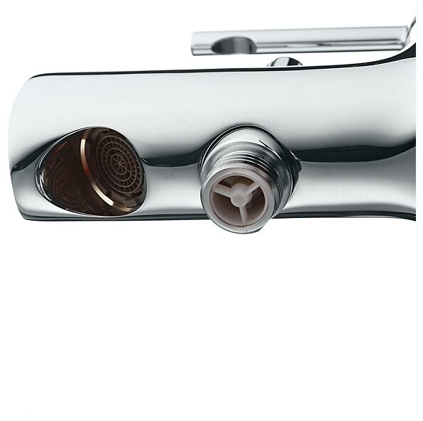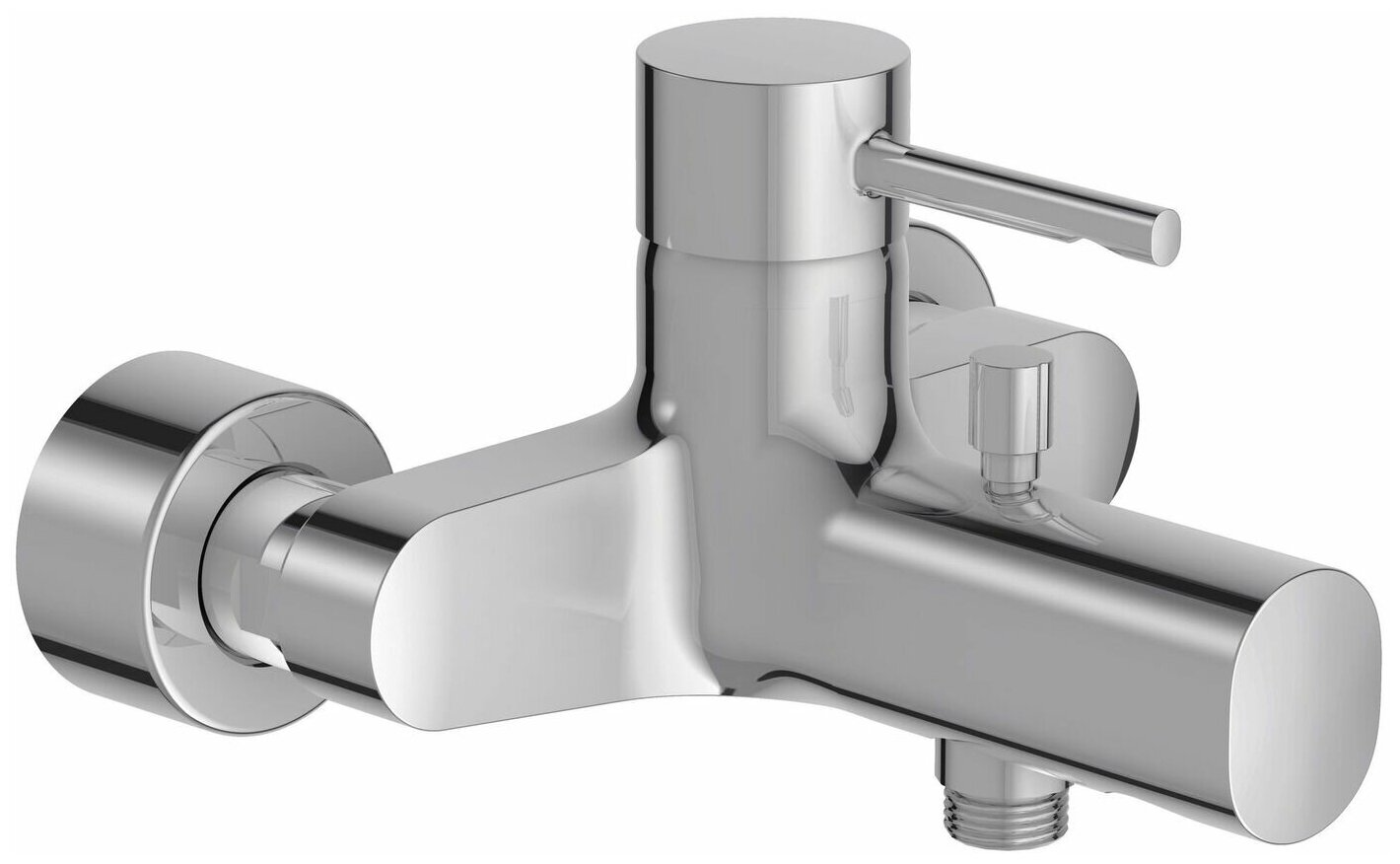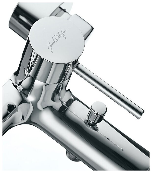 Его литой корпус с коротким изливом оснащен отводом для подключения душевого шланга и удобной рукояткой. Дивертор, находящийся на изливе, позволяет переключаться между режимами ванны и душа.