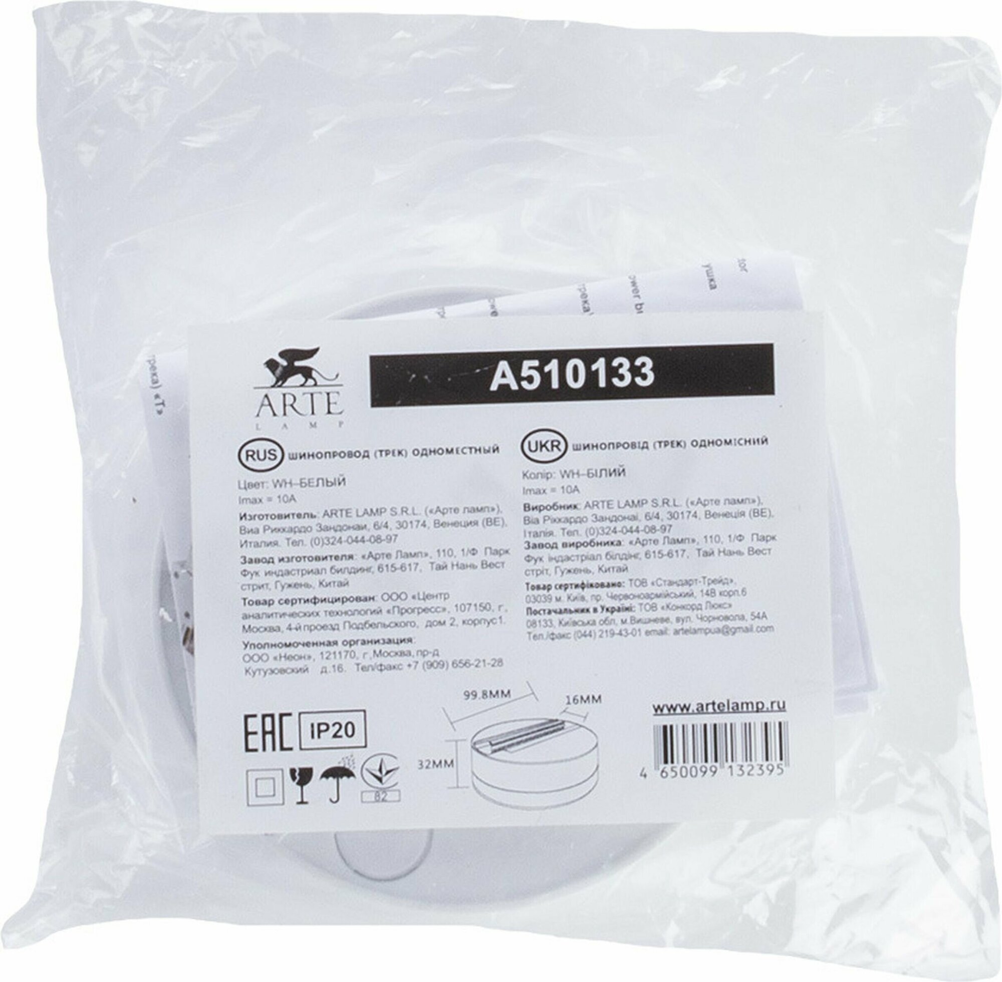 Одноместный шинопровод-трек ARTE LAMP A510133