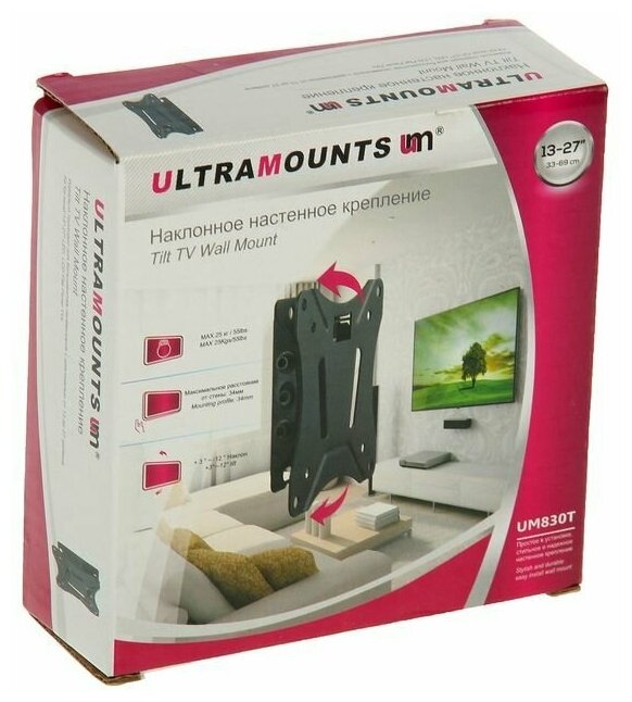 Ultramounts послужит великолепным решением для техники размером от 13 до 27 дюймов. Благодаря надежной конструкции модель выдерживает до 25 кг.