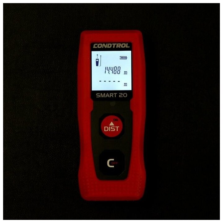Лазерный дальномер CONDTROL Smart 20 1-4-096 пригодится для измерения расстояний в закрытых помещениях. Полученные данные выводятся на дисплей с подсветкой, что позволяет работать при любых условиях освещения. Дальномер имеет функцию трекинга (непрерывное измерение) и автоматически отключается после 3-х минут бездействия. В качестве источника питания используются алкалиновые батареи, заряда которых хватит на 5000 измерений.