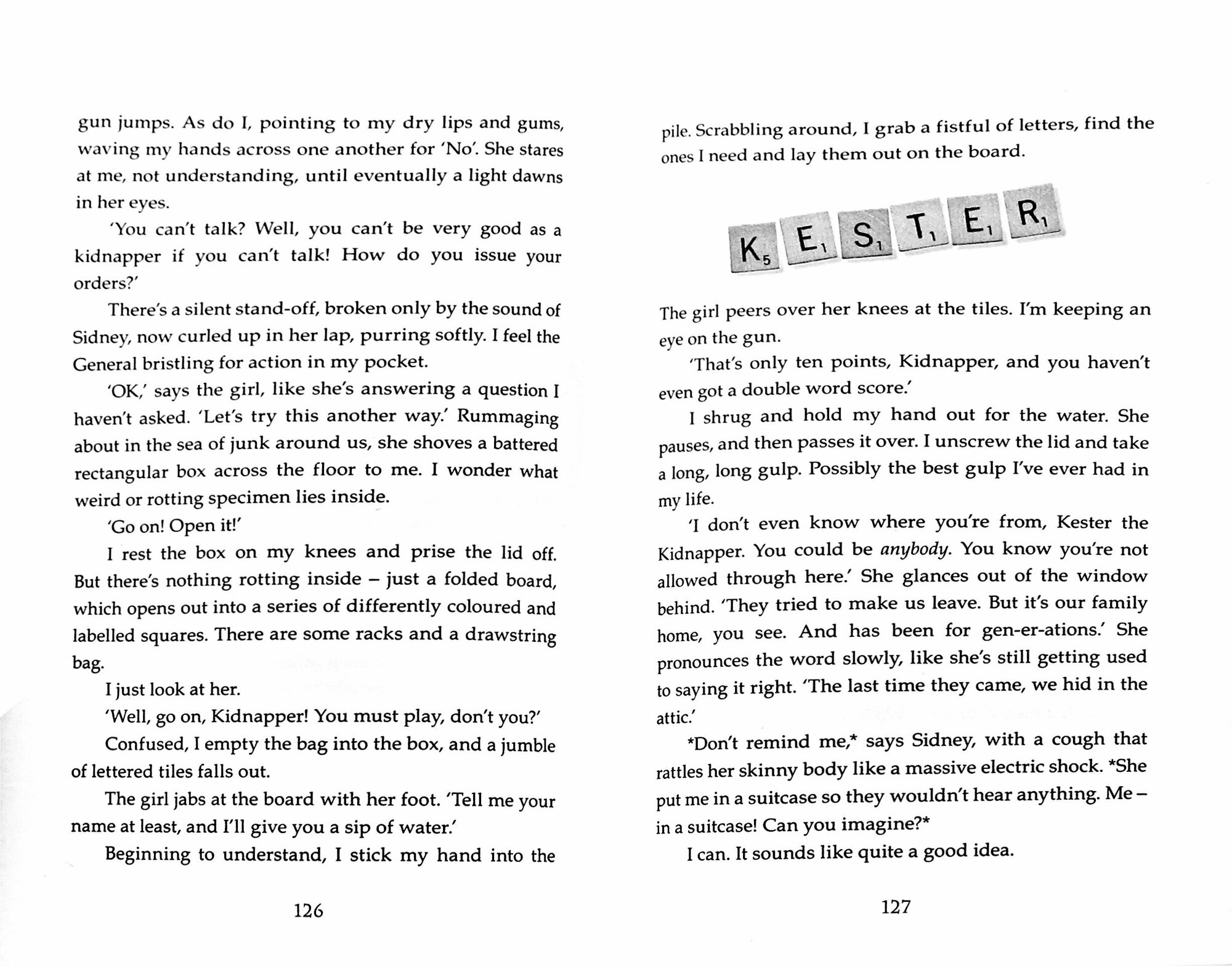 In a world where animals no longer exist, twelve-year-old Kester Jaynes sometimes feels like he hardly exists either. Locked away in a home for troubled children, he's told there's something wrong with him. So when he meets a flock of talking pigeons and a bossy cockroach, Kester thinks he's finally gone crazy. But the animals have something to say. And they need him. The pigeons fly Kester to a wild place where the last creatures in the land have survived. A wise stag needs Kester's help, and together they must embark on a great journey, joined along the way by an overenthusiastic wolf cub, a military-trained cockroach, a mouse with a ritual for everything, and a stubborn girl named Polly. The animals saved Kester Jaynes. But can Kester save the animals?