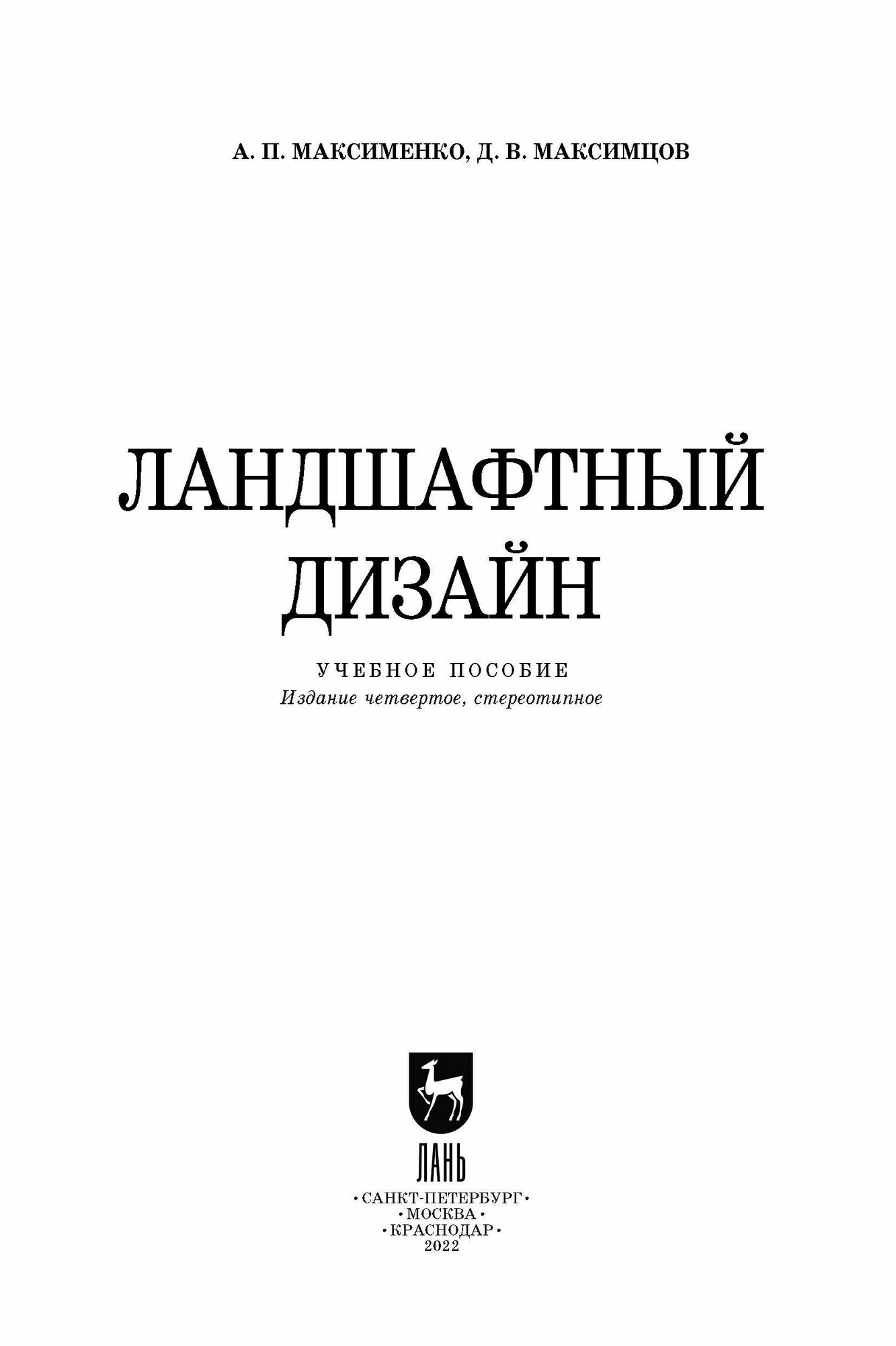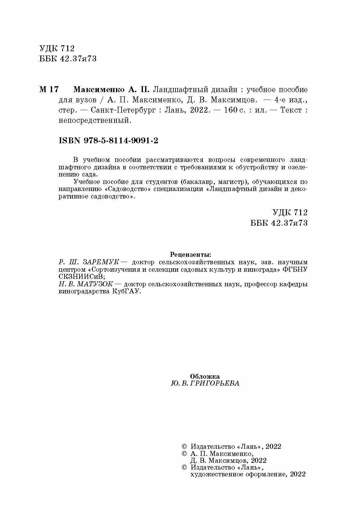 Ландшафтный дизайн. Учебное пособие (Максименко Анатолий Петрович, Максимцев Денис Витальевич); Лань, 2022