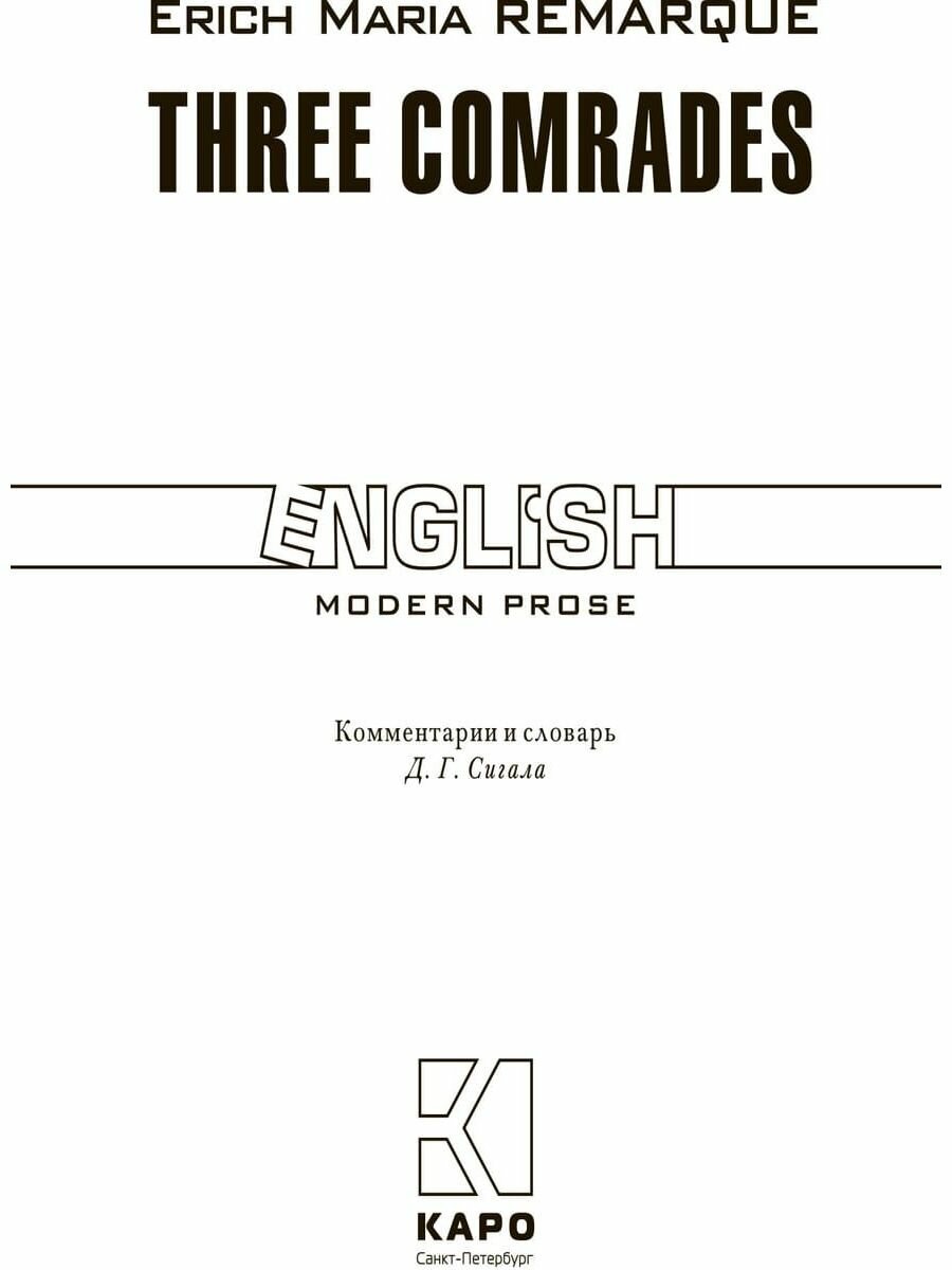 Впервые в России тем, кто любит книги знаменитого немецкого писателя Эриха Марии Ремарка и изучает английский язык, издательство КАРО предлагает один из лучших романов писателя, "Три товарища", в английском переводе.