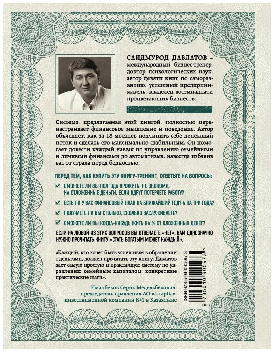 Стать богатым может каждый. 12 шагов к обретению финансовой стабильности (Саидмурод Раджабович Давлатов); Эксмо, 2025