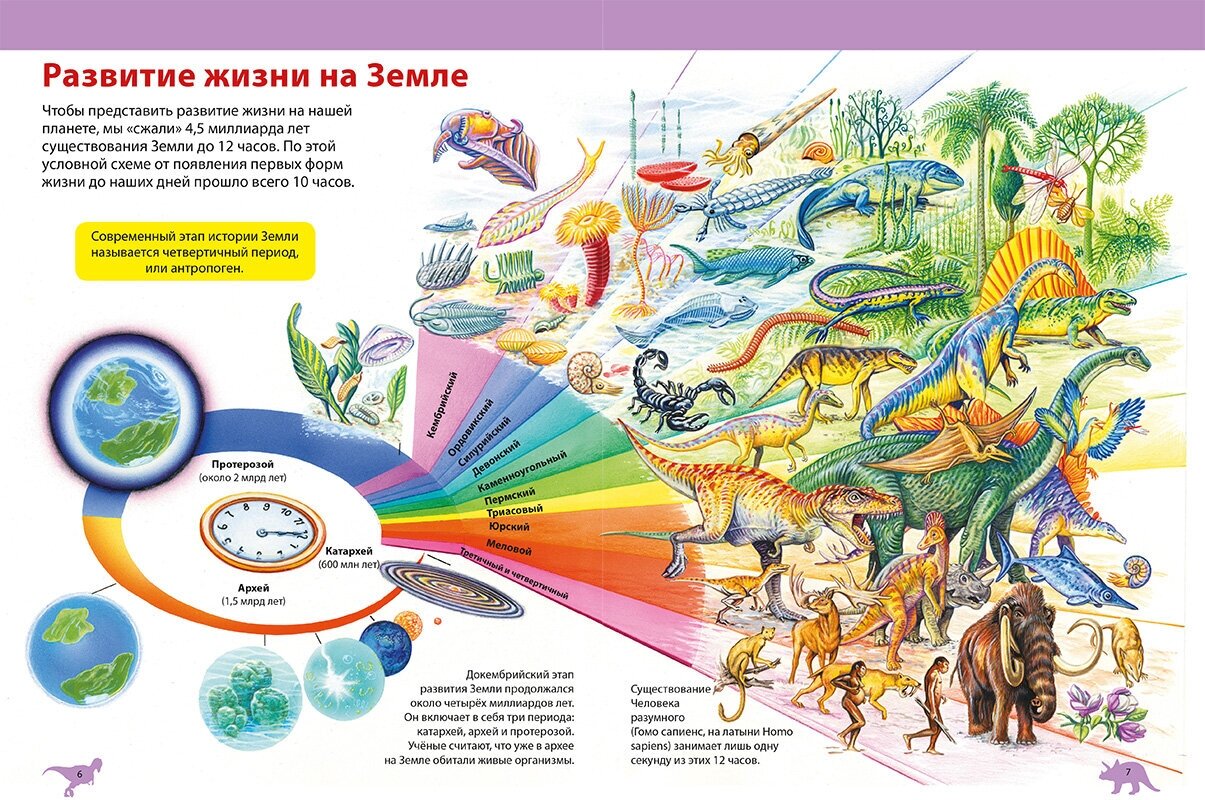 Сама энциклопедия увеличенного формата, обложка твердая и лакированная. Бумага страниц плотная, иллюстрации и текст не просвечиваются на оборот. Книга несильно толстая, всего 160 страниц. В целом качество энциклопедии очень хорошее. По содержанию мне понравилось, что есть информация не только именно про динозавров, но и есть именно про развитие континентов и в целом жизни на нашей планете. Самого текста в энциклопедии совсем немного. В основном эта книга – иллюстрации с кратким описанием. Но хочется отметить то, что по смысловой нагрузке информации вполне хватает. Текст написано занимательно и интересно. Плюс, как я вижу, ребенку не надоедает ее читать, либо просто рассматривать. Так что я смело могу рекомендовать эту энциклопедию к покупке